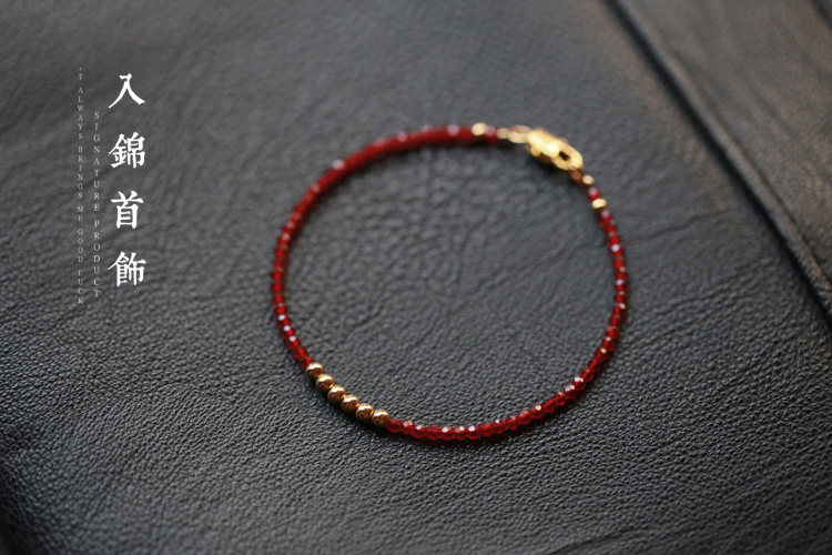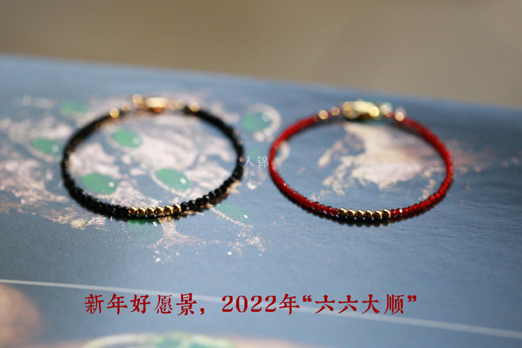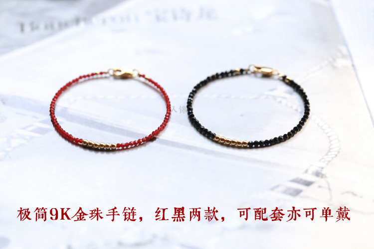 寸光丨情侣款9k金圆珠黑曜石红尖晶石极细手链