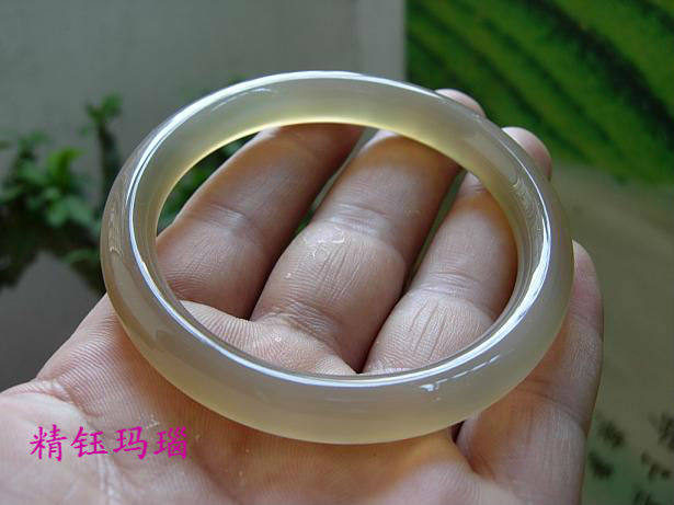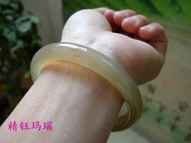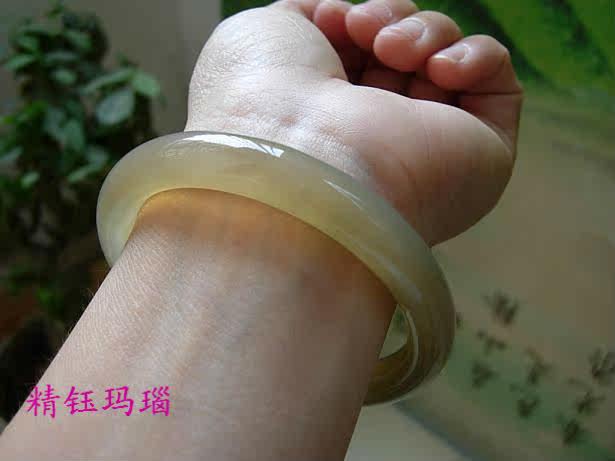 纯天然蜜黄色巴西玛瑙 圆条玉髓手镯55mm 通透荧光/无高温