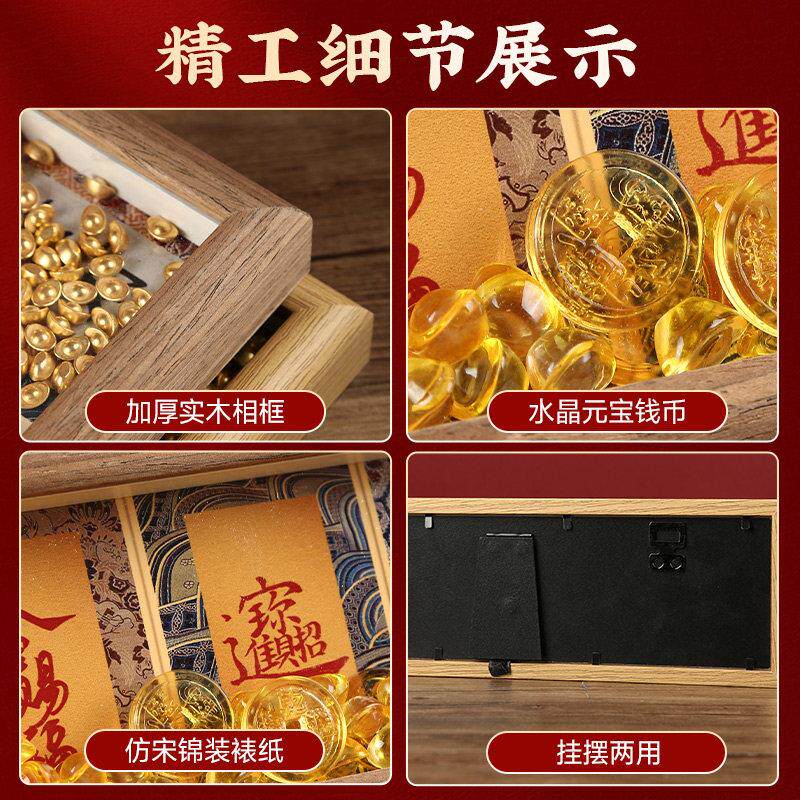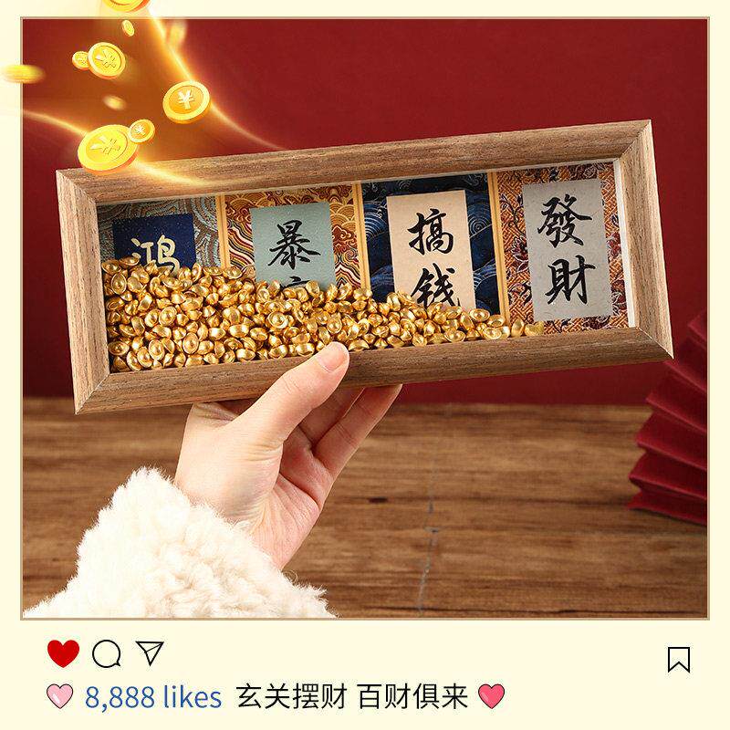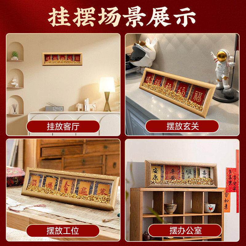 五福抱财摆台相框宋锦硬卡纸办公室家居国风书法摆件国潮桌面装饰