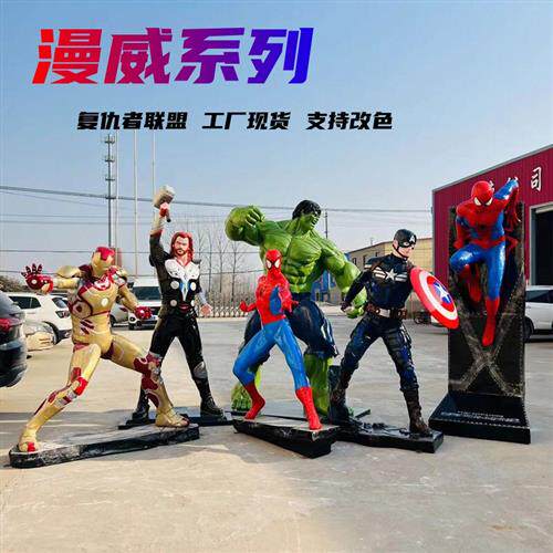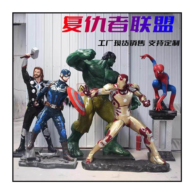 复仇者联盟钢铁侠绿巨人美国队长蜘蛛侠玻璃钢雕塑电影人物摆件