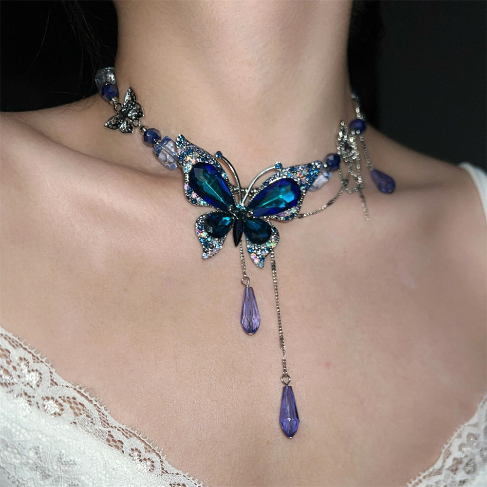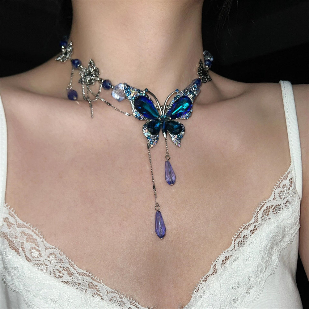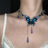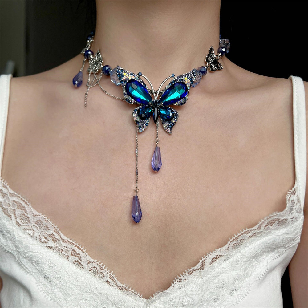 zoozmomo重工夸张蓝色水滴蝴蝶流苏项链女轻奢小众高级感锁骨链潮