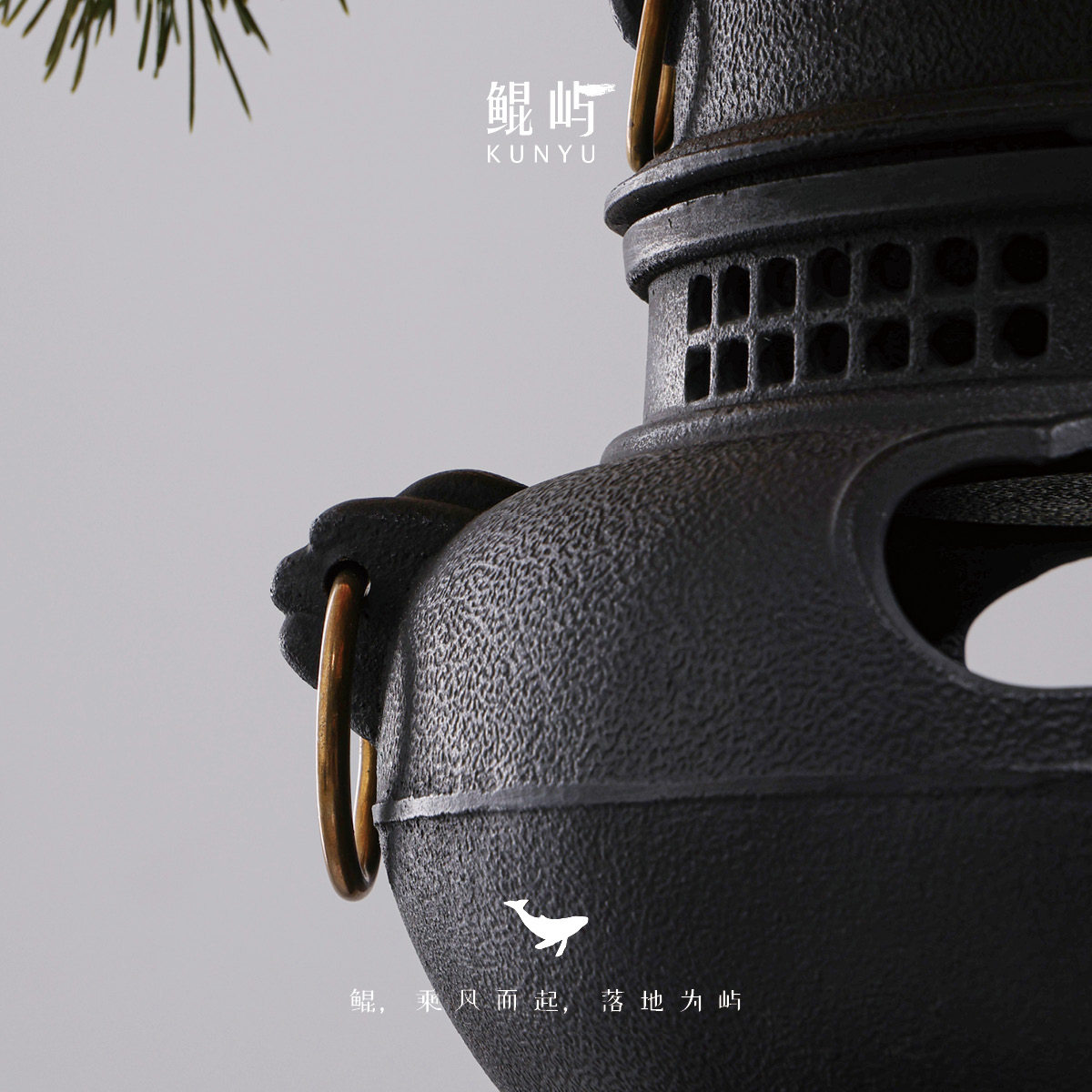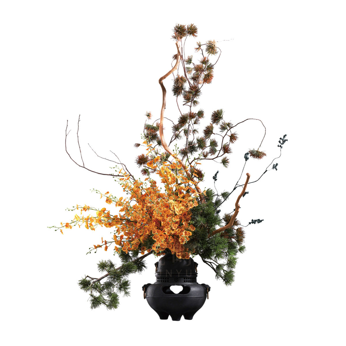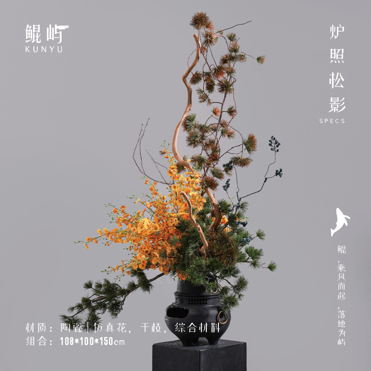 鲲屿 新中式别墅玄关大型摆件【炉照松影】样板间橙色仿真花艺