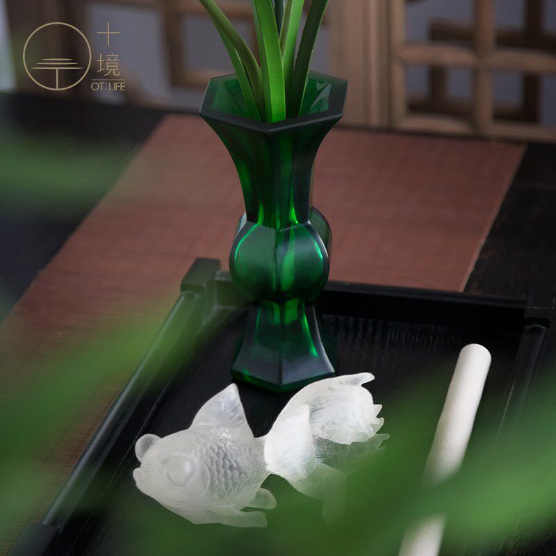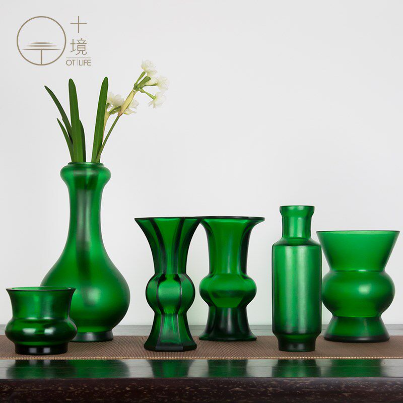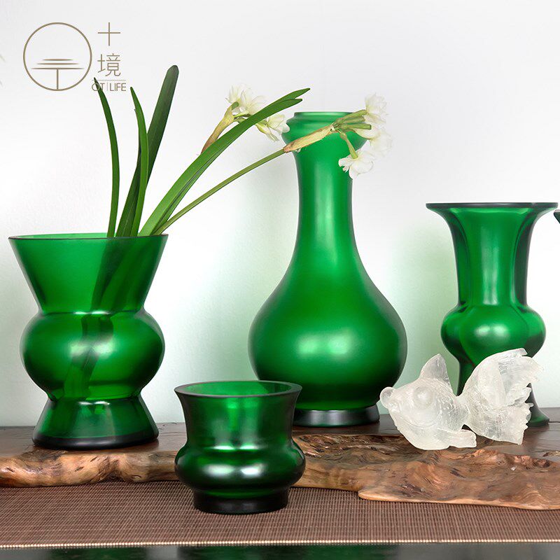 十境OTlife软装新款绿色琉璃花器新中式家居客厅酒店样板间摆件