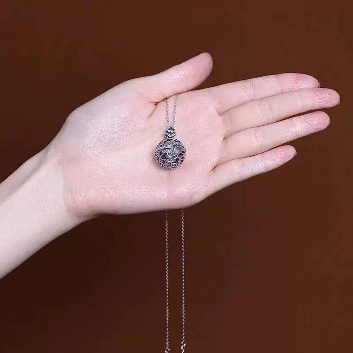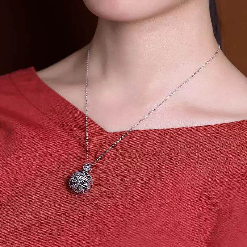 S925纯银香囊球挂件项链祥云吊坠镂空可打开香薰球香丸女款复古风