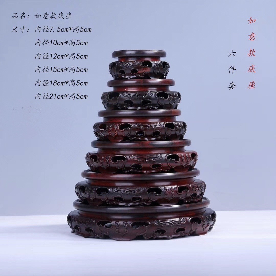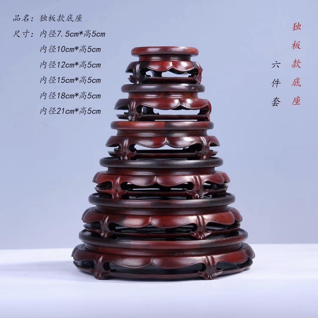 红酸枝独板长眼款如意底座中式镂空雕刻圆形茶壶香炉花瓶底座批发