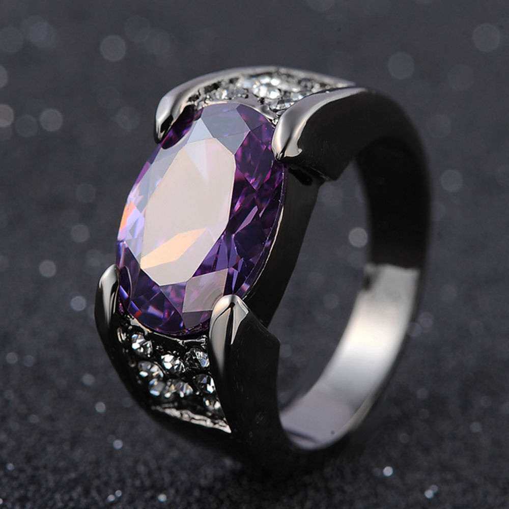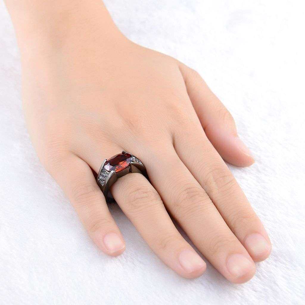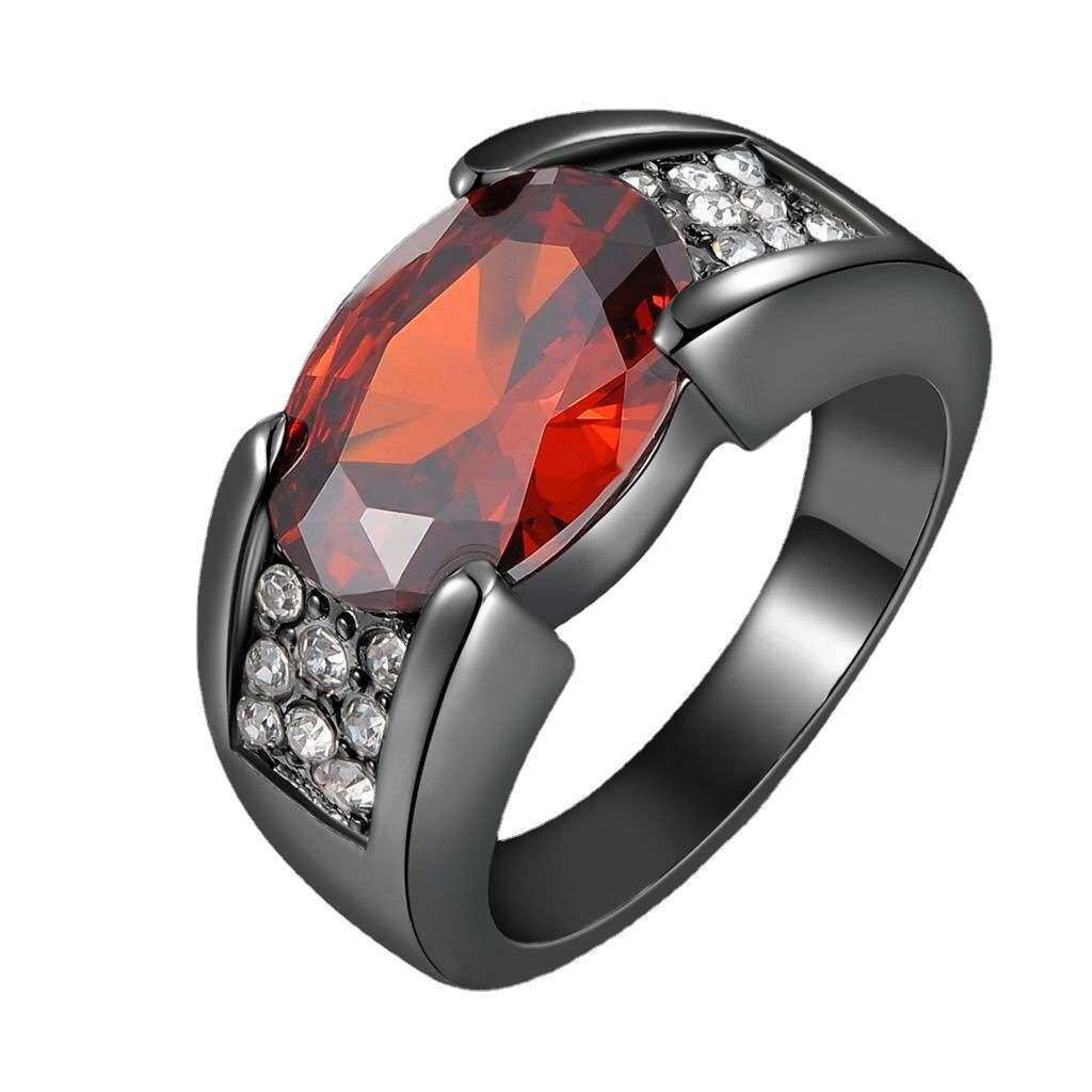 臻荣速卖通热卖镀黑枪色黑金戒指 镶嵌红宝石指环 聚会派对婚戒