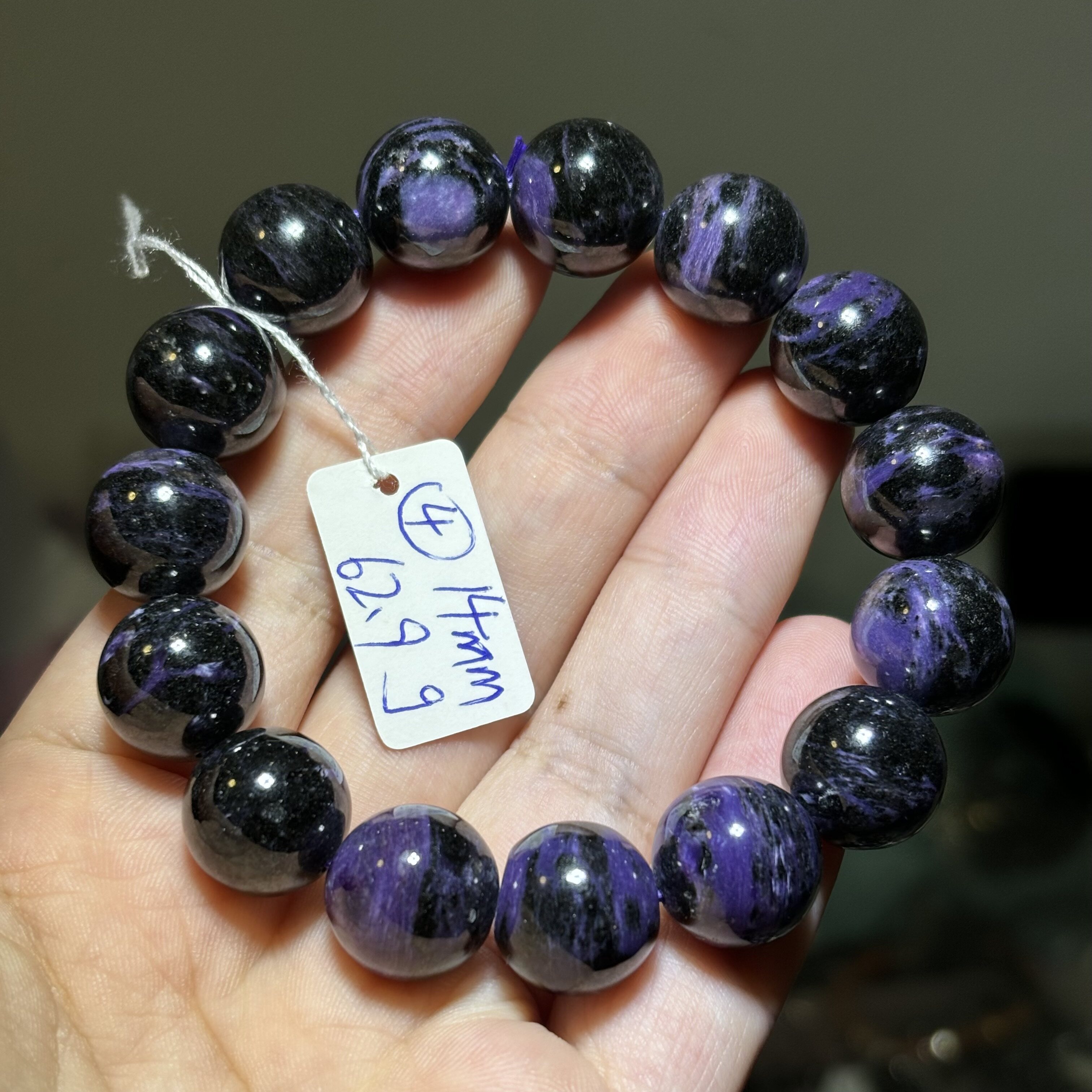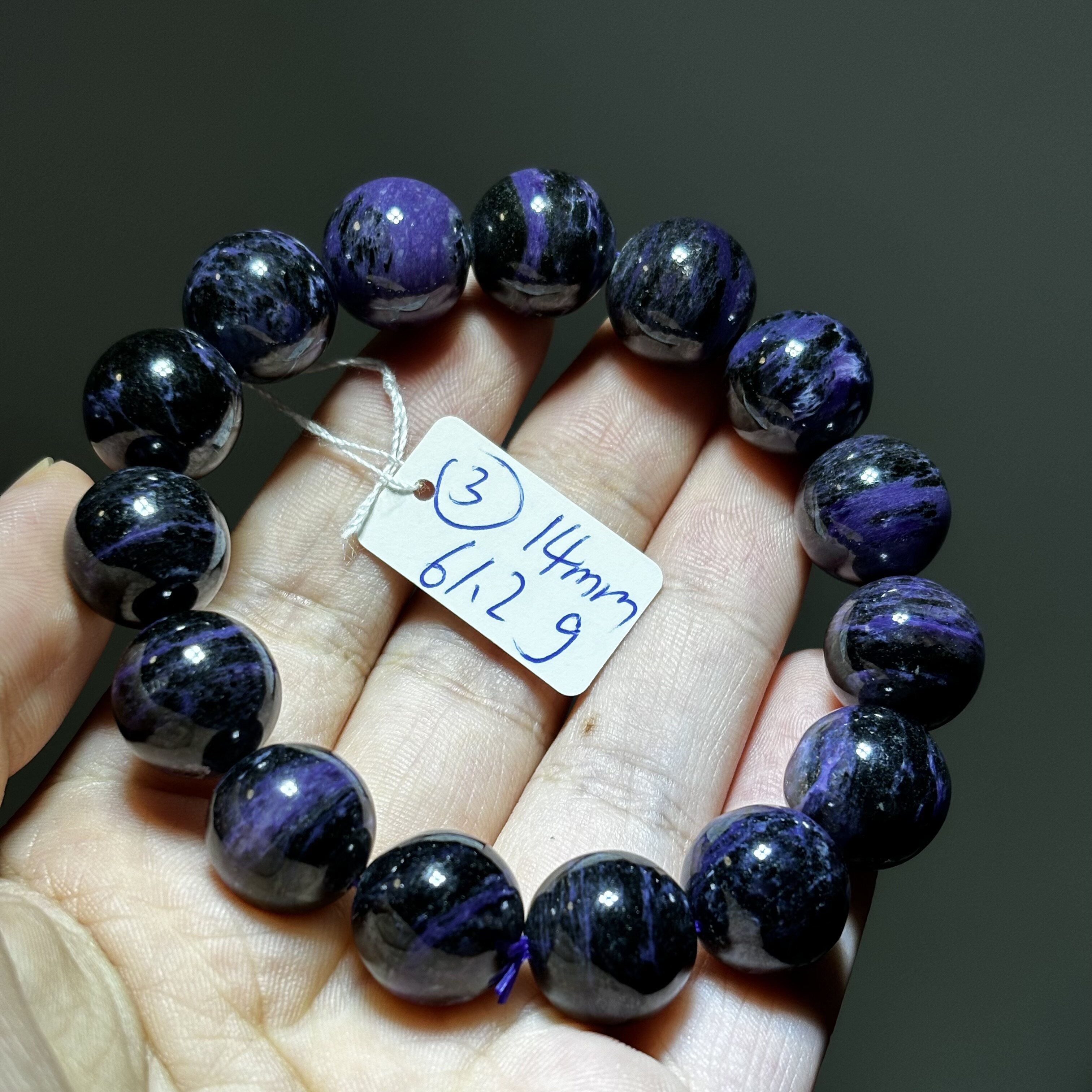 天然紫龙晶圆珠手串有黑矿男女生礼物 查罗石紫色水晶 一物一图