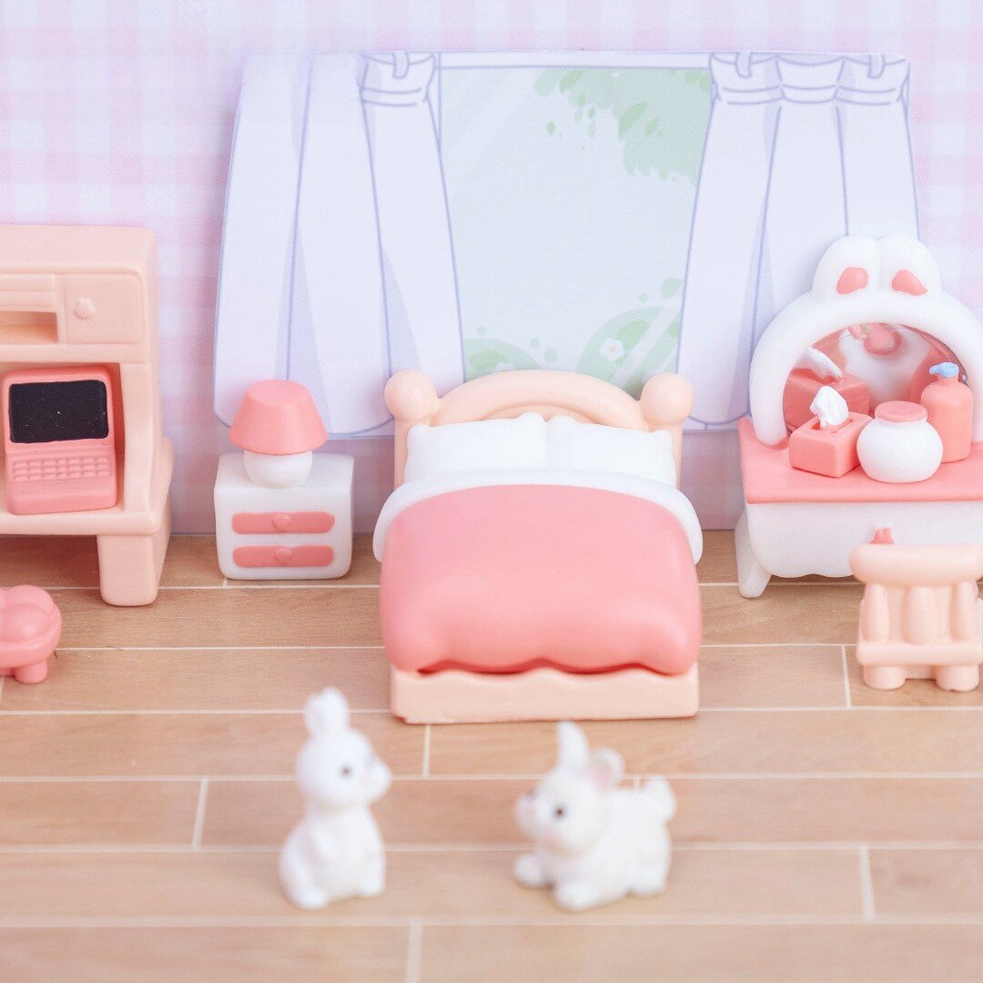 微景观创意粉色少女心卧室装饰品配件 娃屋diy微缩家具模型小摆件
