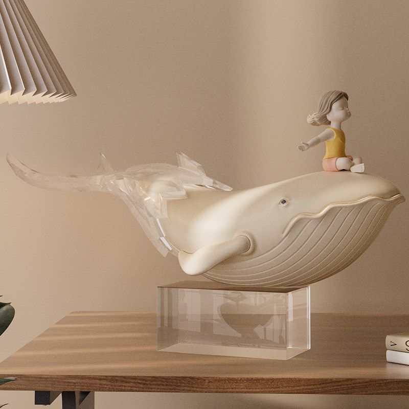 乘风破浪鲸鱼摆件艺术家居高级感软装姹寂风客厅书房电视柜装饰品