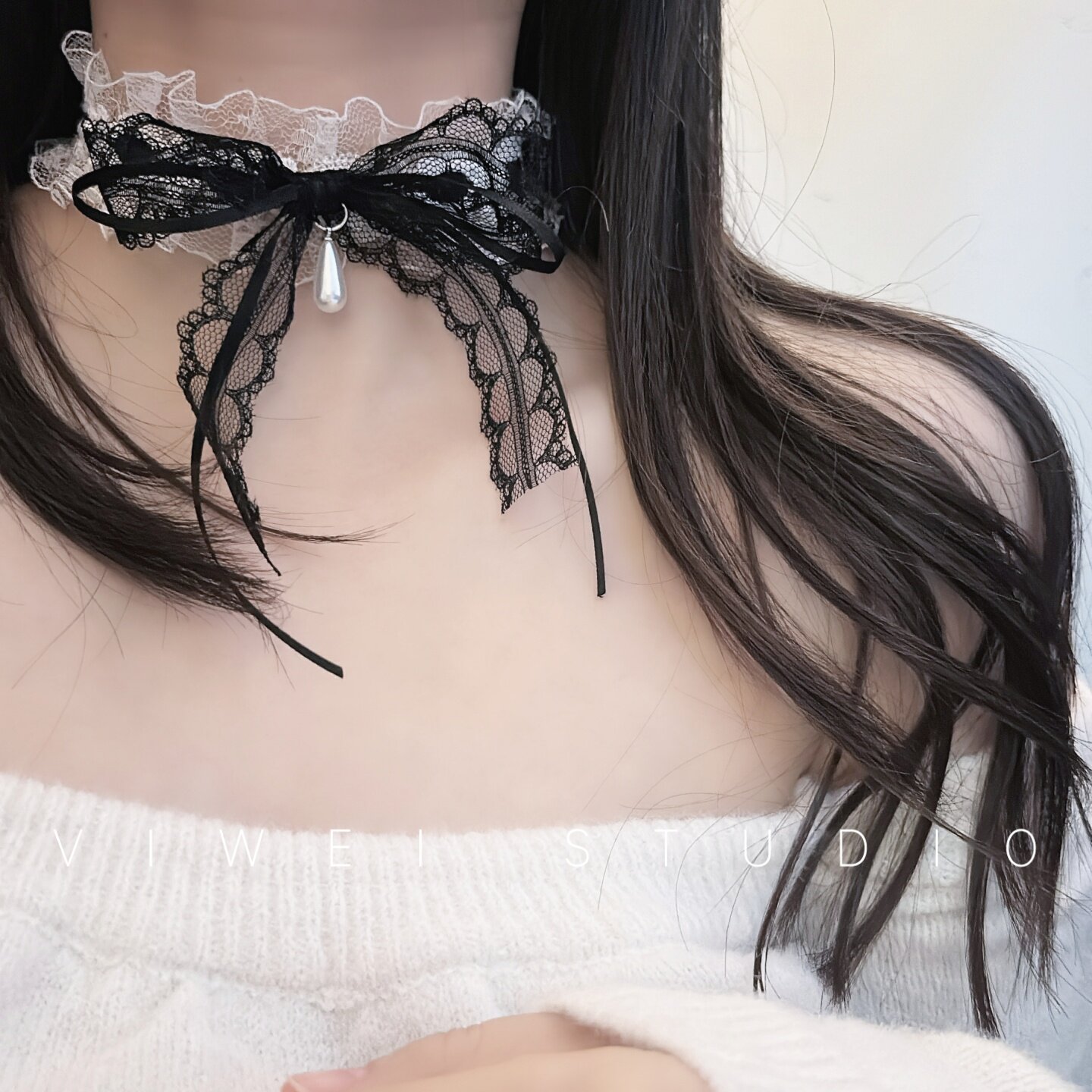 「蕾丝loli」蝴蝶结蕾丝纯欲气质小众甜美choker项链洛丽塔JK颈带