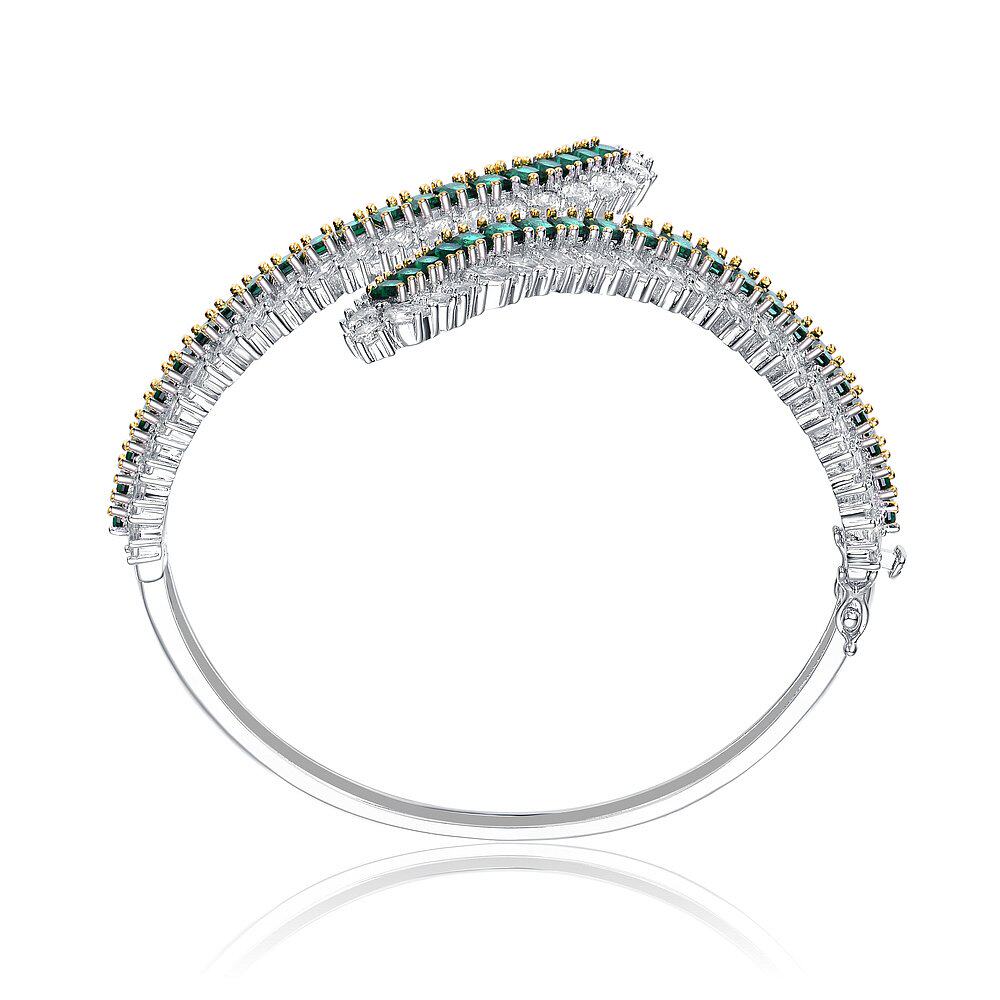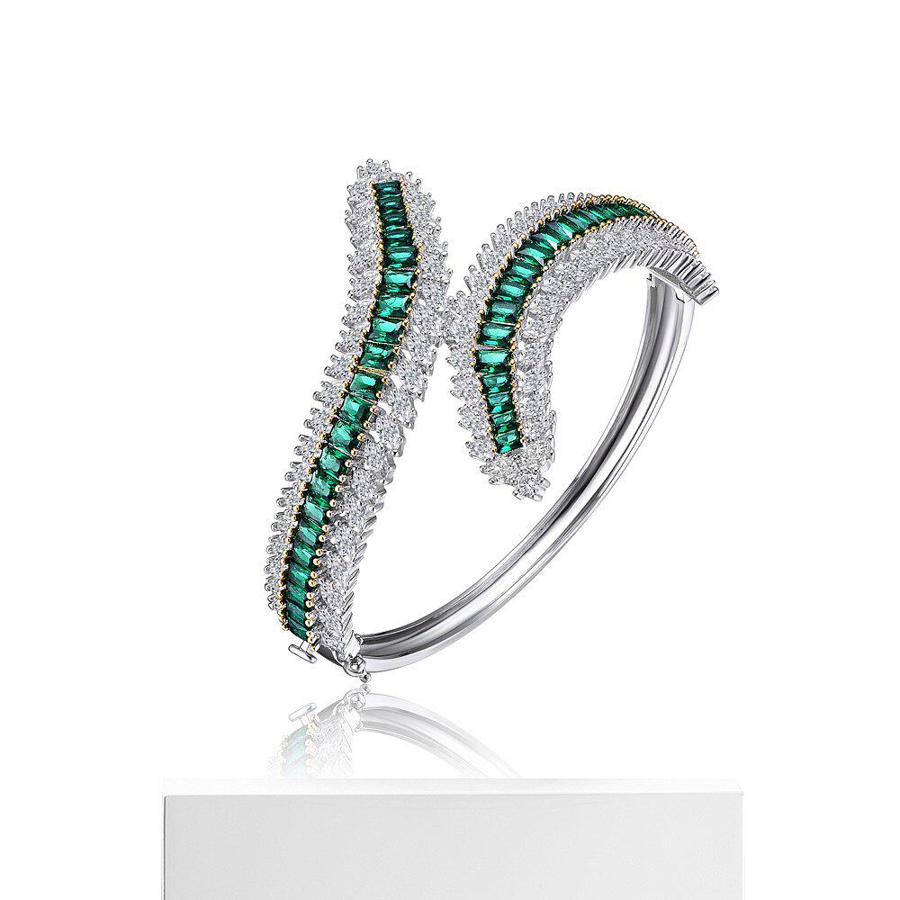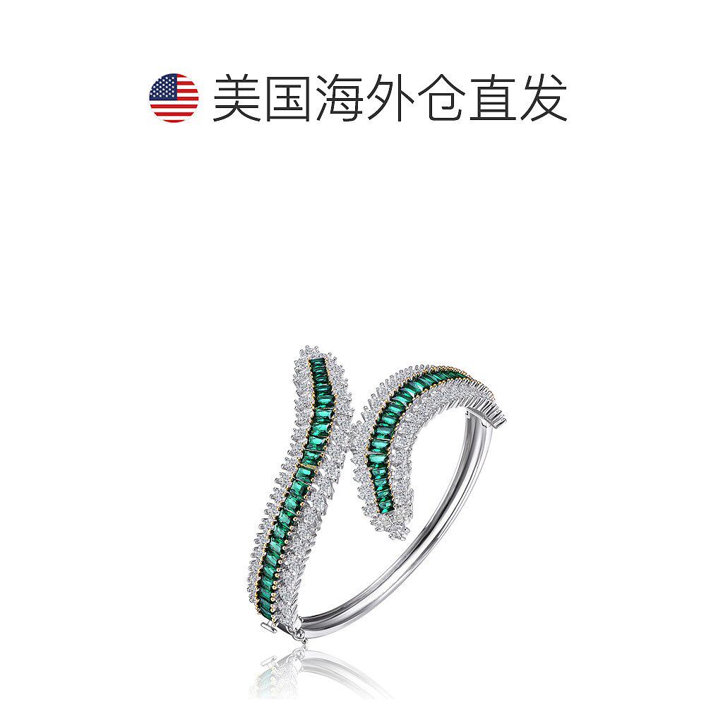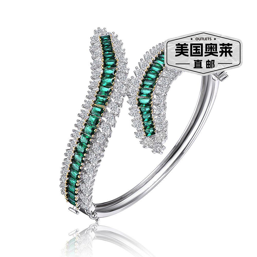 自营 geneviveGa 纯银镀铑祖母绿方晶锆石手镯 - 绿色 美国奥莱直