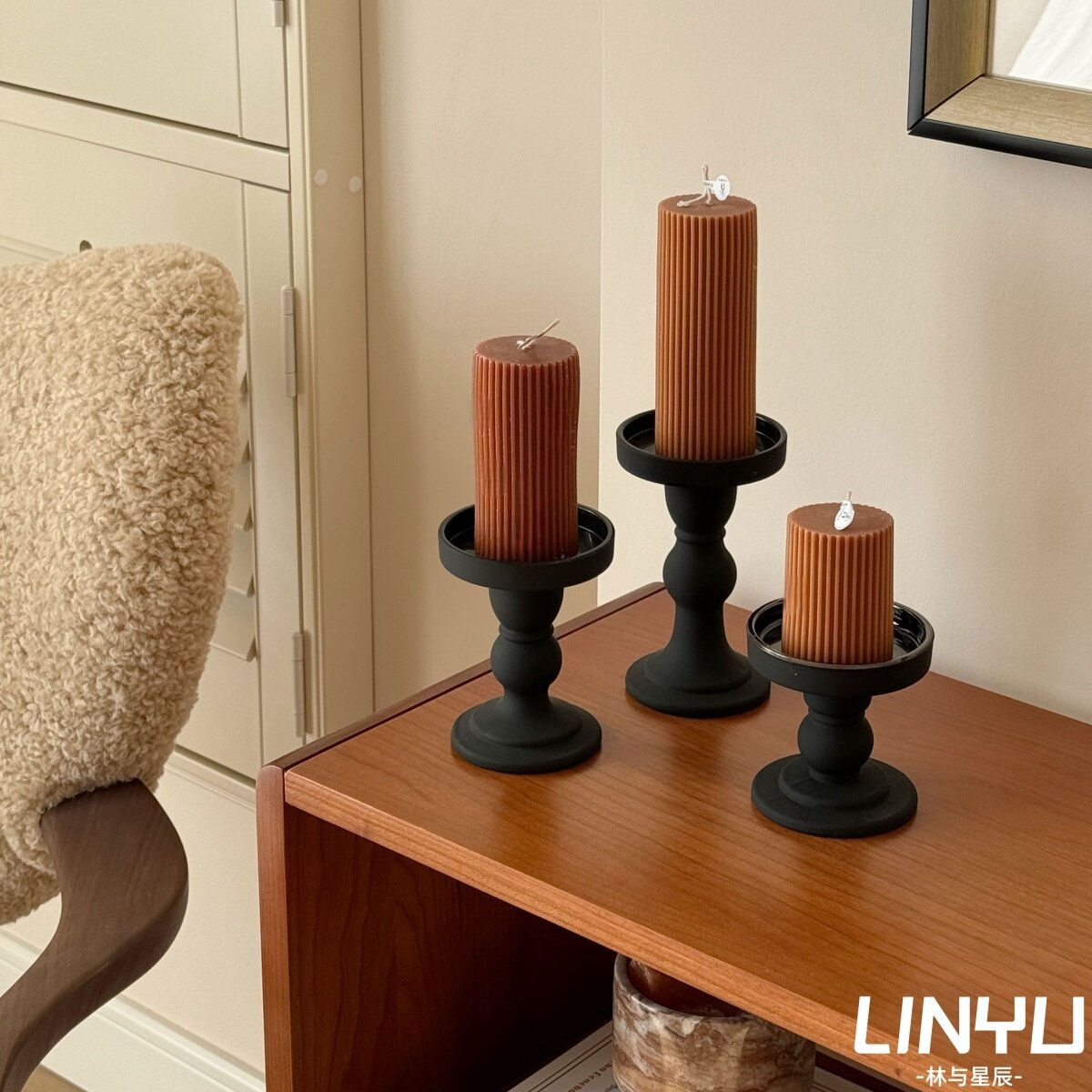 香薰蜡烛小众高级卧室淡香烛台家用持久香氛家居装饰摆件拍照道具