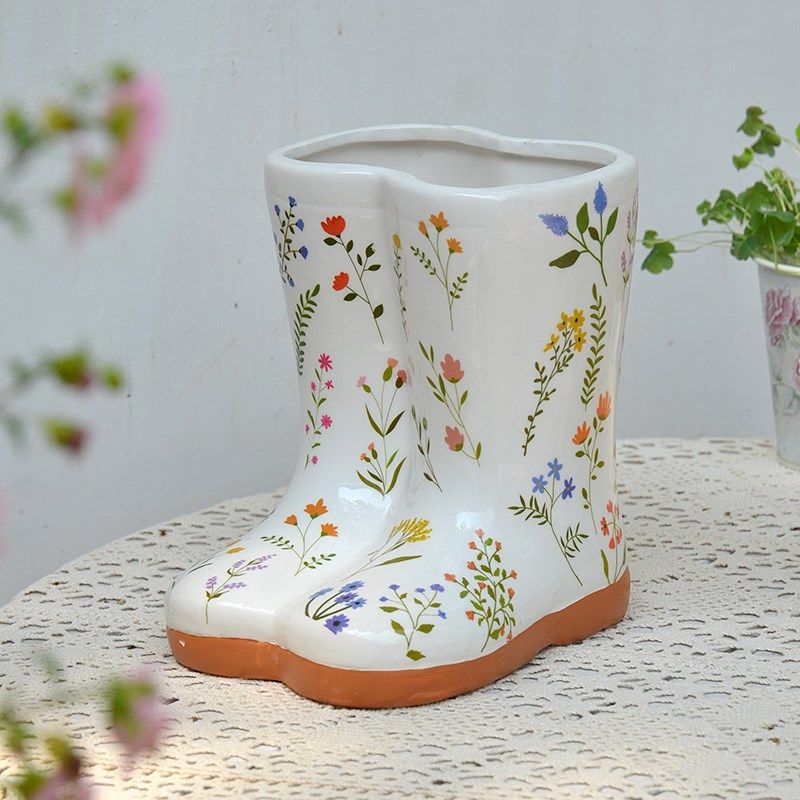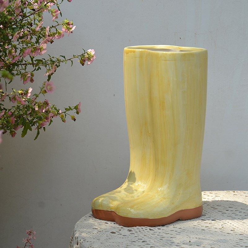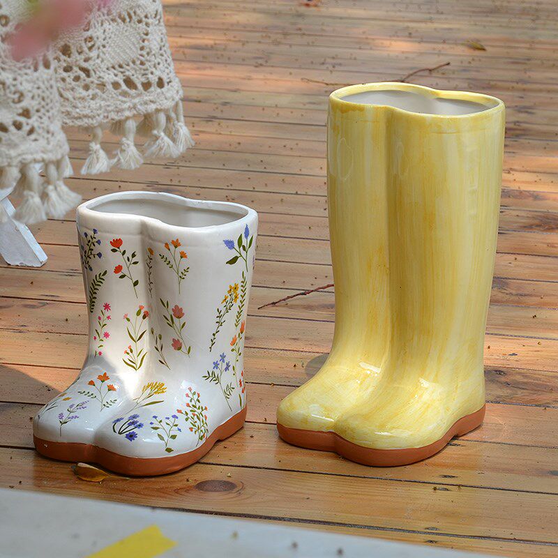 陶瓷靴子雨靴花盆雨伞插桶阳台婚礼花园别墅庭院园艺布景装饰摆件