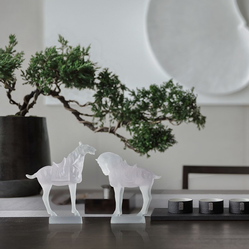 新中式白色透明磨砂动物马摆件客厅书房玄关装饰品博X古架艺术摆