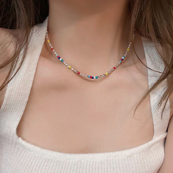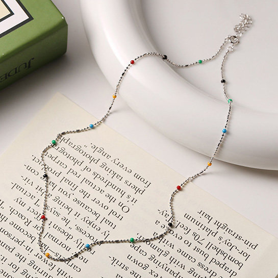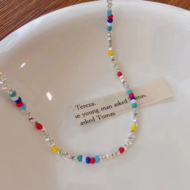925纯银彩色串珠彩虹多巴胺碎银子叠戴项链女高级感轻奢小众45cm