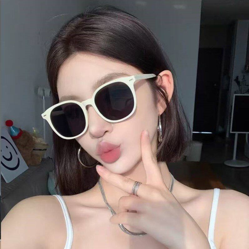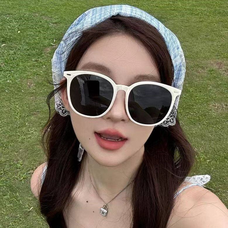 墨镜女感2026新款大脸防晒圆形白色框太阳眼镜显脸小