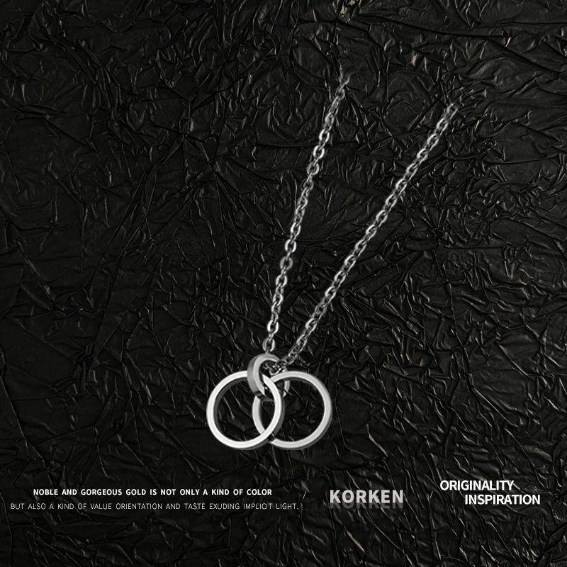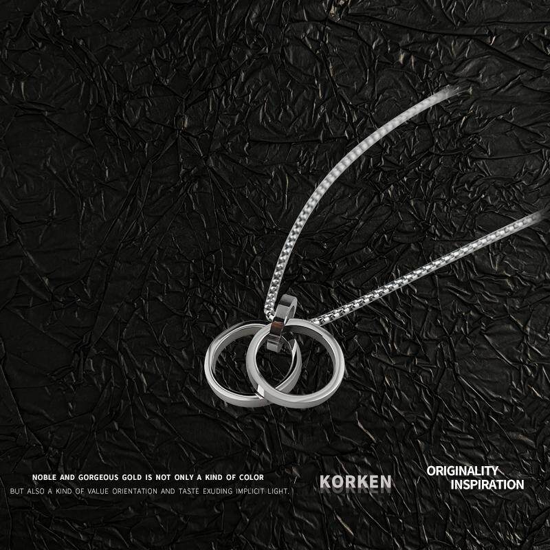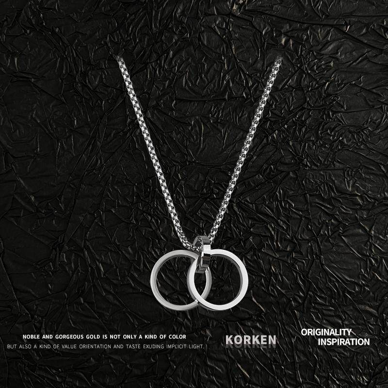 KORKEN钛钢项链男士霸气潮男个性韩版百搭双环戒指吊坠送男友礼物