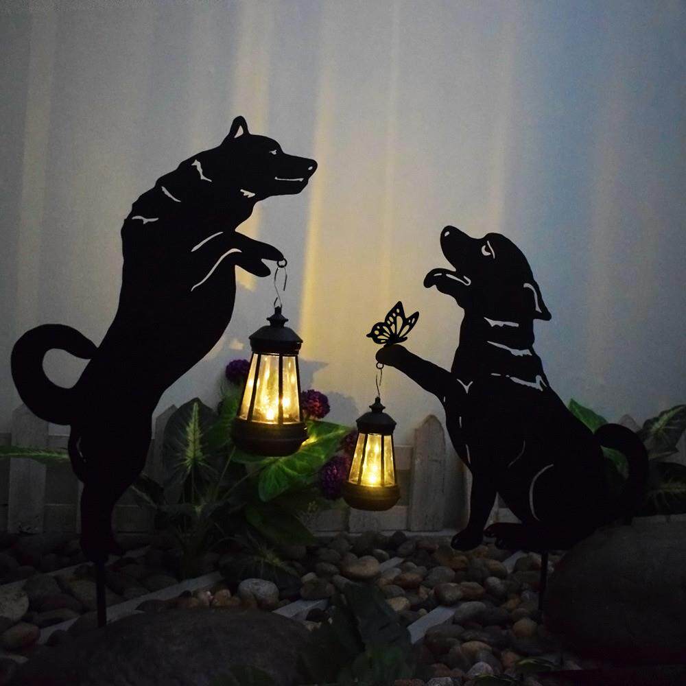 跨境新太阳能灯猫咪花园庭院插件万圣节黑猫装饰摆饰金属工艺礼品
