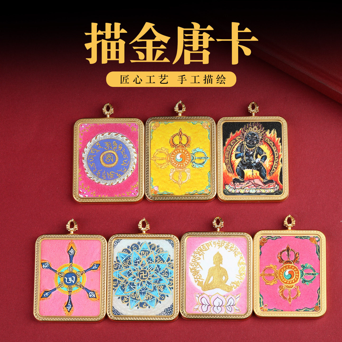 唐卡半手绘喵姐唐卡心咒粗矿唐卡饰品吊坠扎基拉姆
