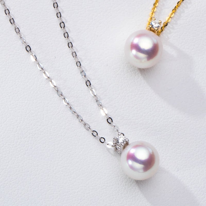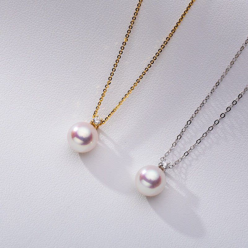 AKOYA海水珍珠吊坠王妃款18K金镶嵌钻石白色强光女妈妈款送礼物