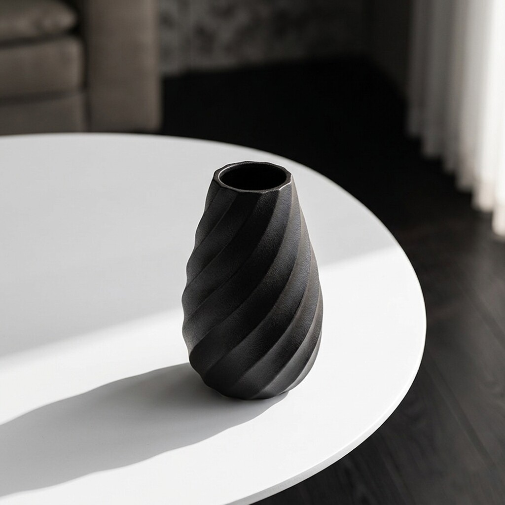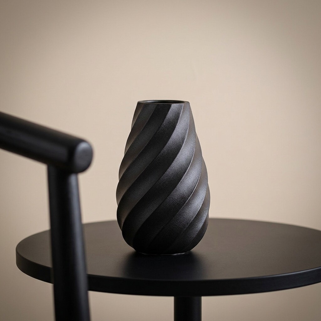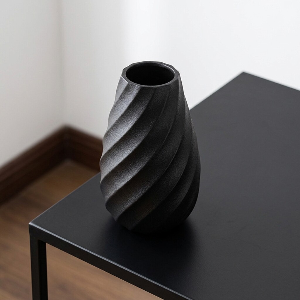 现代简约陶瓷花瓶摆件家居装饰品螺旋纹理黑色花器软装