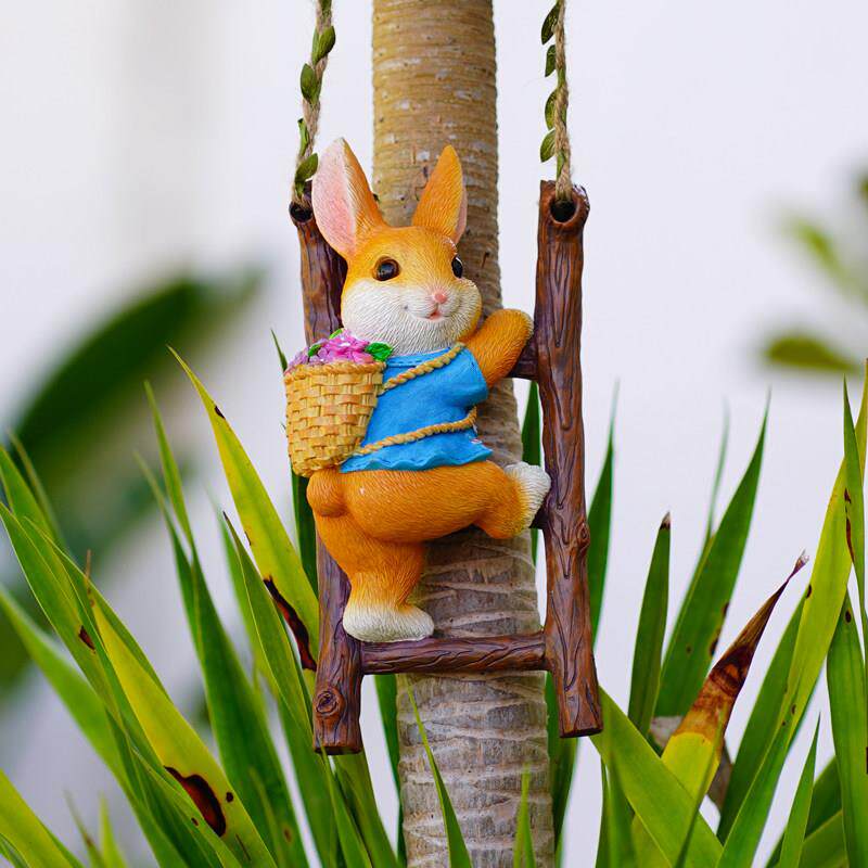 爬梯兔子花园阳台壁挂户外攀爬树上秋千挂件管道装饰幼儿园摆件