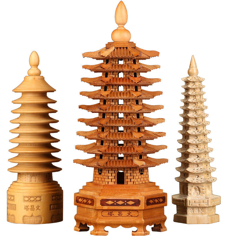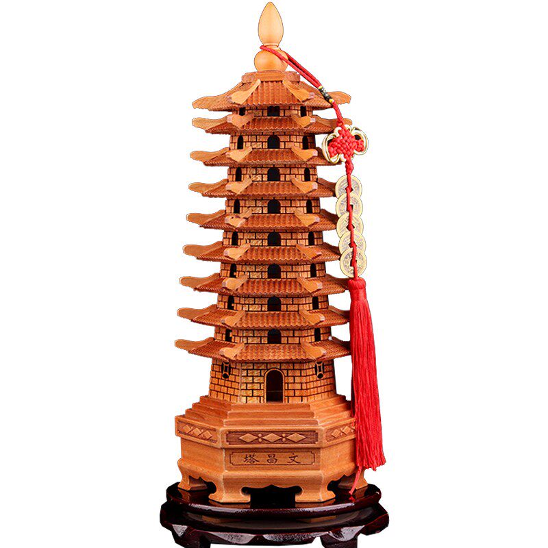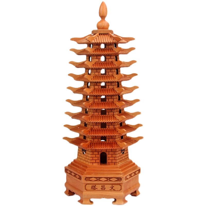 桃木文昌塔实木13层木制书房办公摆件工艺品状元送毛笔