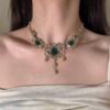 复古宫廷绿色气质重工锆石水滴项链套装精致锁骨宴会耳钉配饰耳环