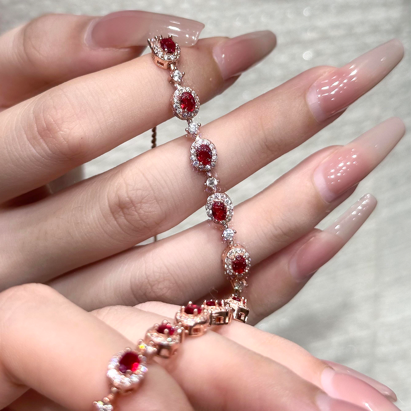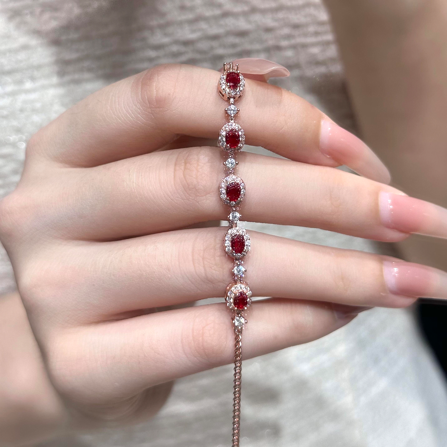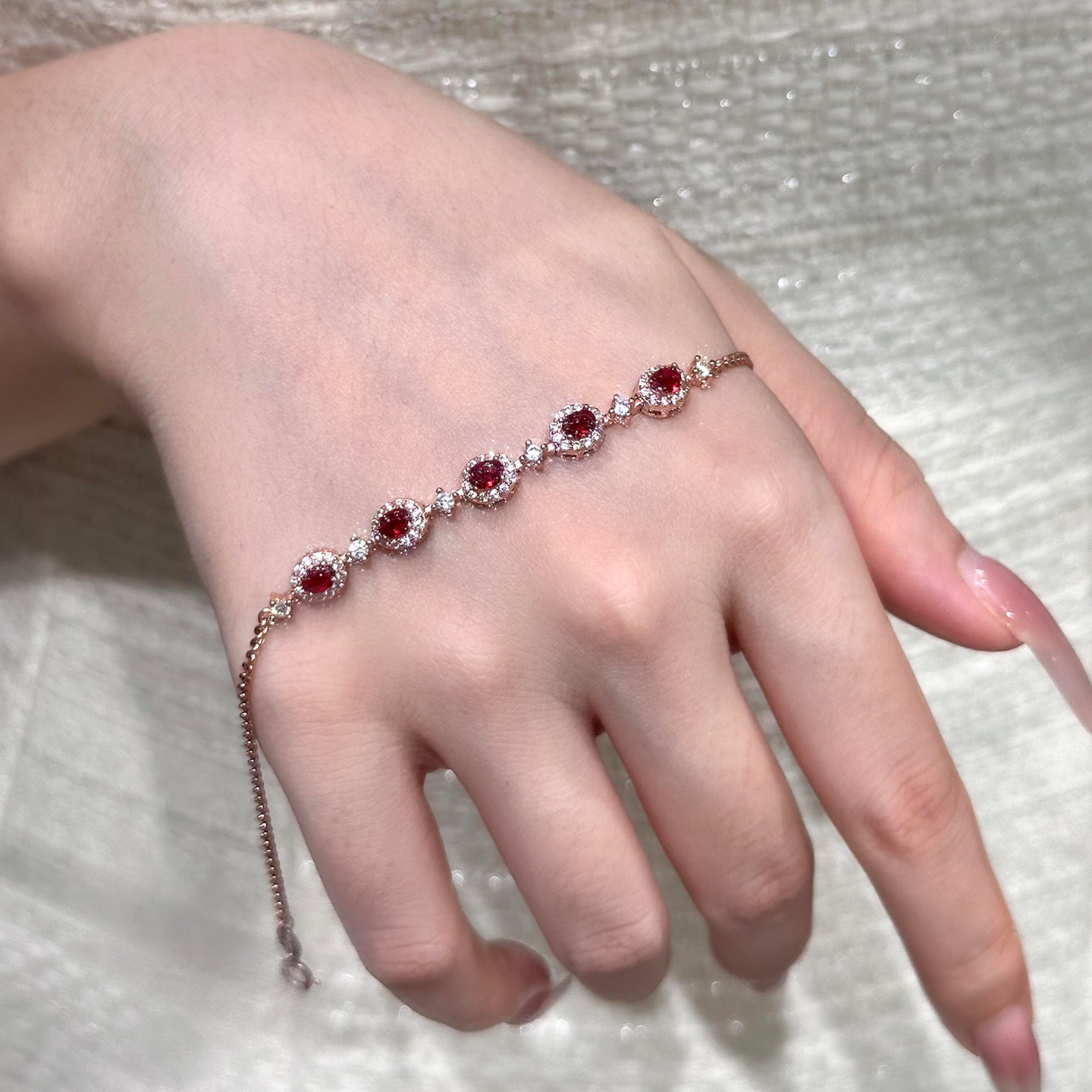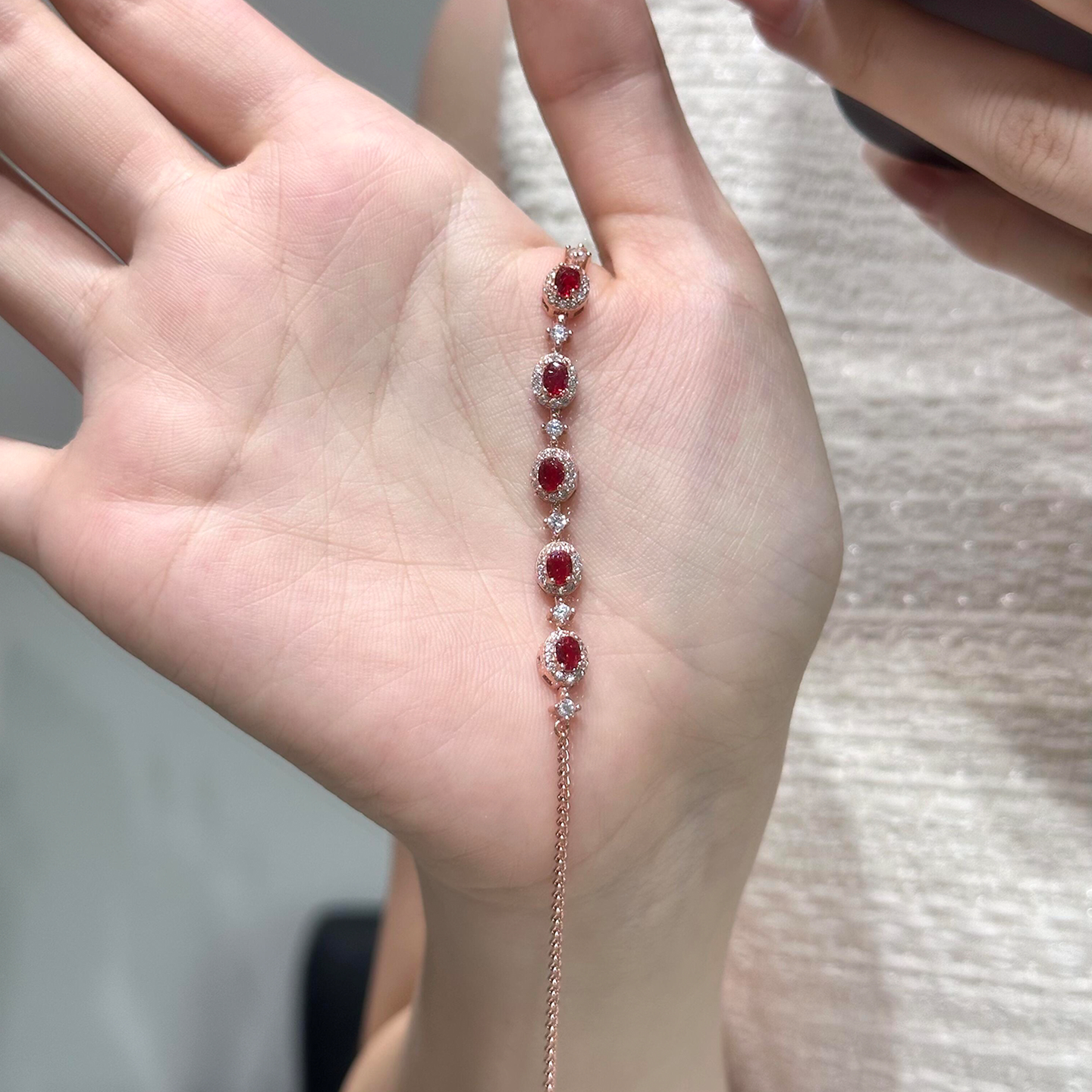 爆闪红色椭圆仿锆石手链女轻奢小众精致高级感老钱风气质显白手饰