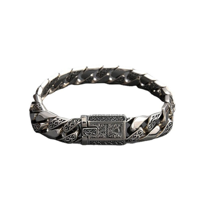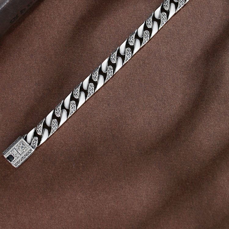 2023新款唐草朋克光身S925泰银手链韩版时尚情侣手链男友礼物