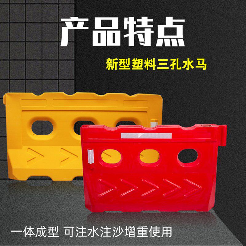 天津全新料三孔水马1.8米1.2米注水围挡滚塑吹塑水马防撞桶隔离墩