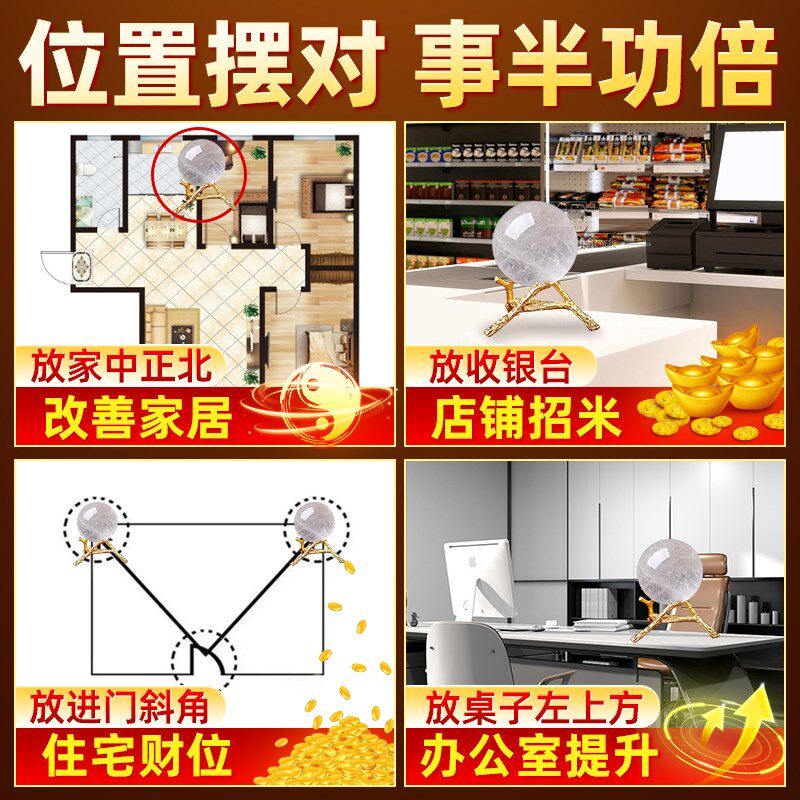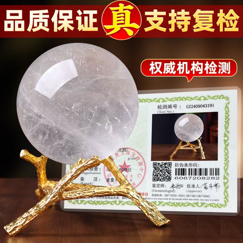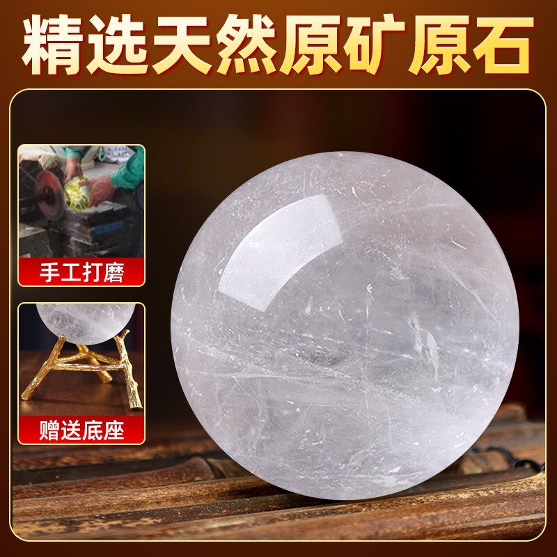 天然白色水晶球摆件原石打磨客厅家居摆件办公室店铺桌面装饰品