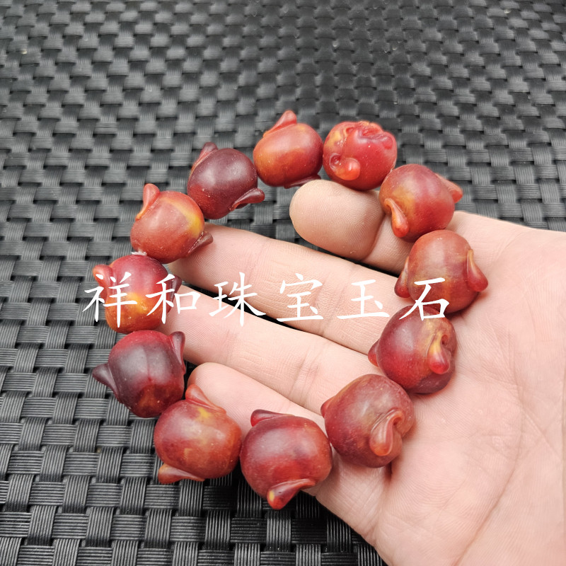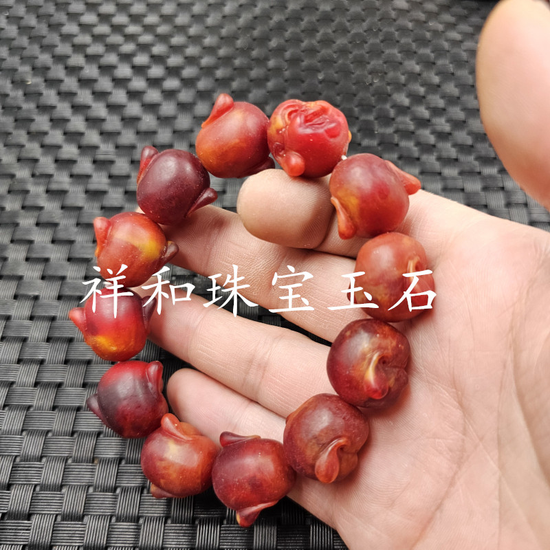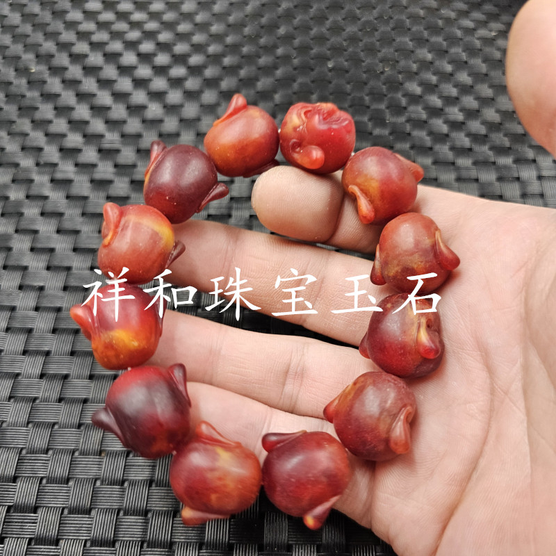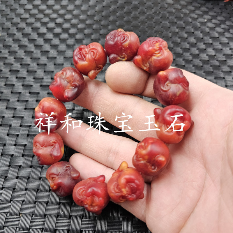 荧光浮盐水蜜蜡佛头手链人造橘红色蜜蜡弥勒佛手链男女同款手串