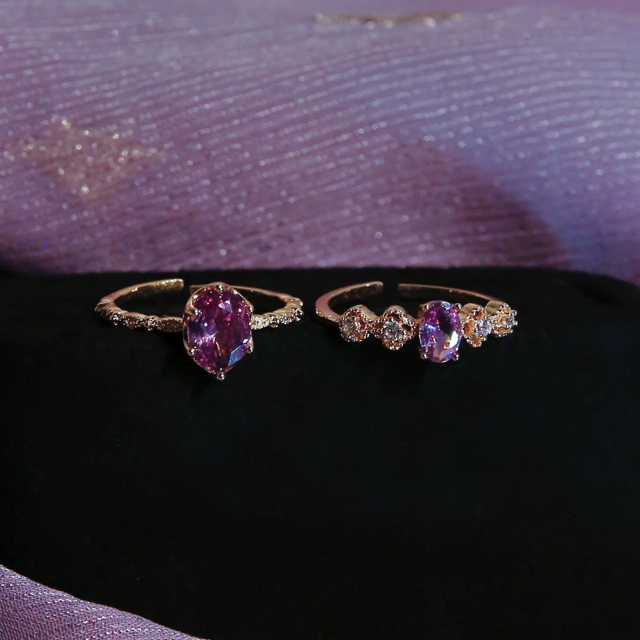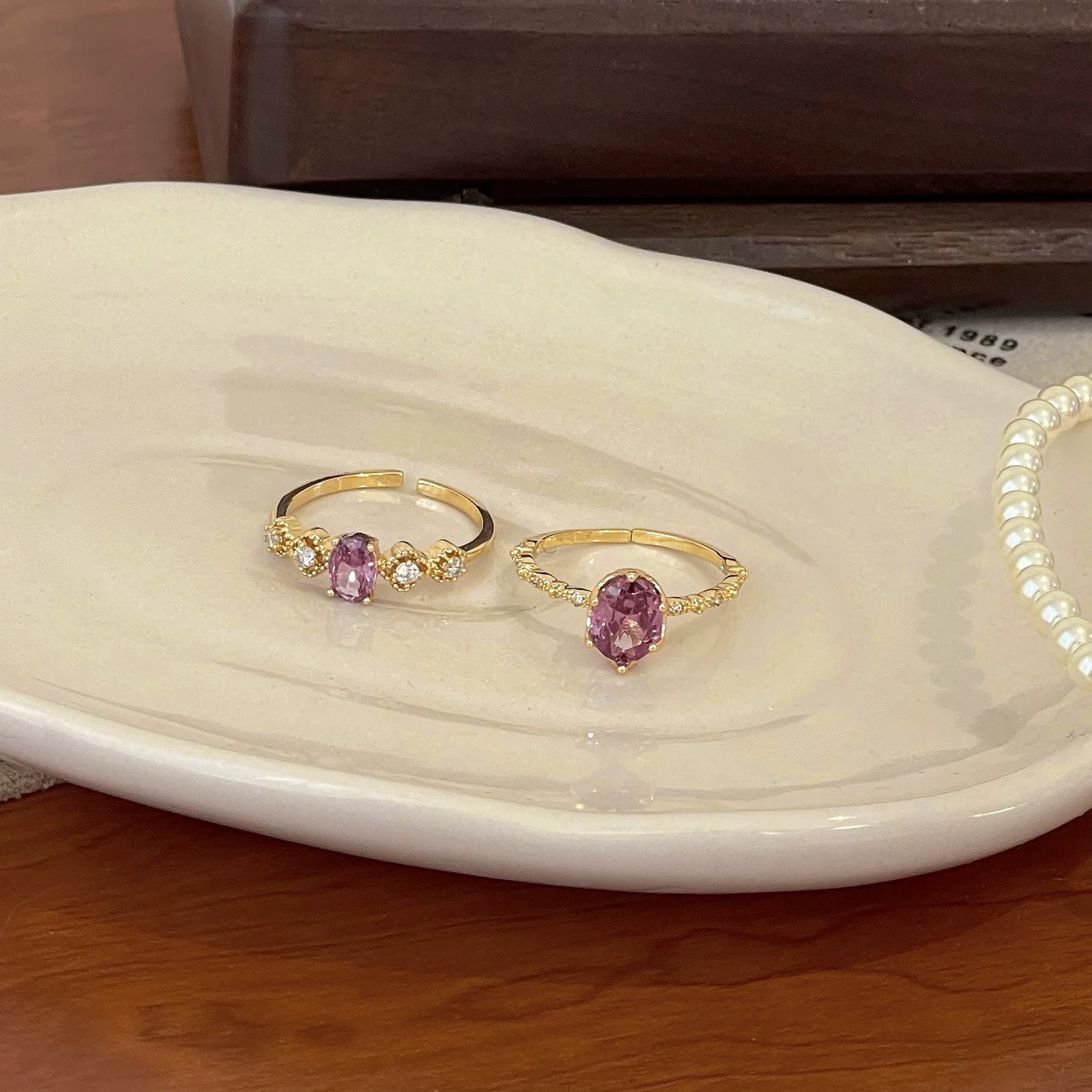 「仲夏夜限定」法式复古高级感温柔轻奢微镶闪耀紫色锆石开口戒指