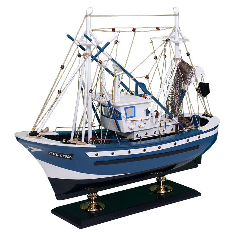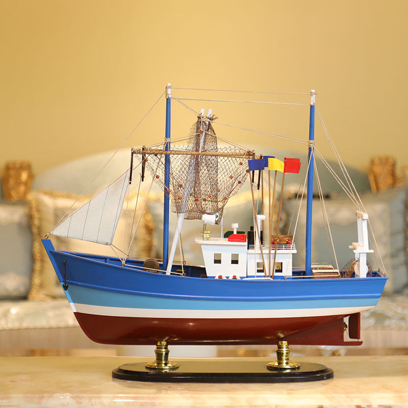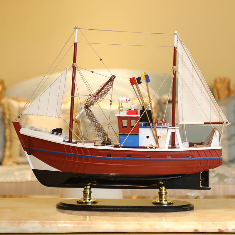 美式帆船模型地中海渔船实木船摆件一帆风顺客厅办公室桌面装饰品