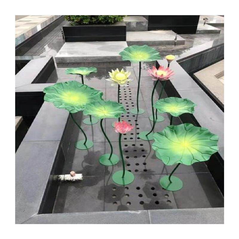 创意仿真不锈钢荷叶摆件室内铁艺荷花仿真花户外鱼池水景金属装饰