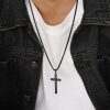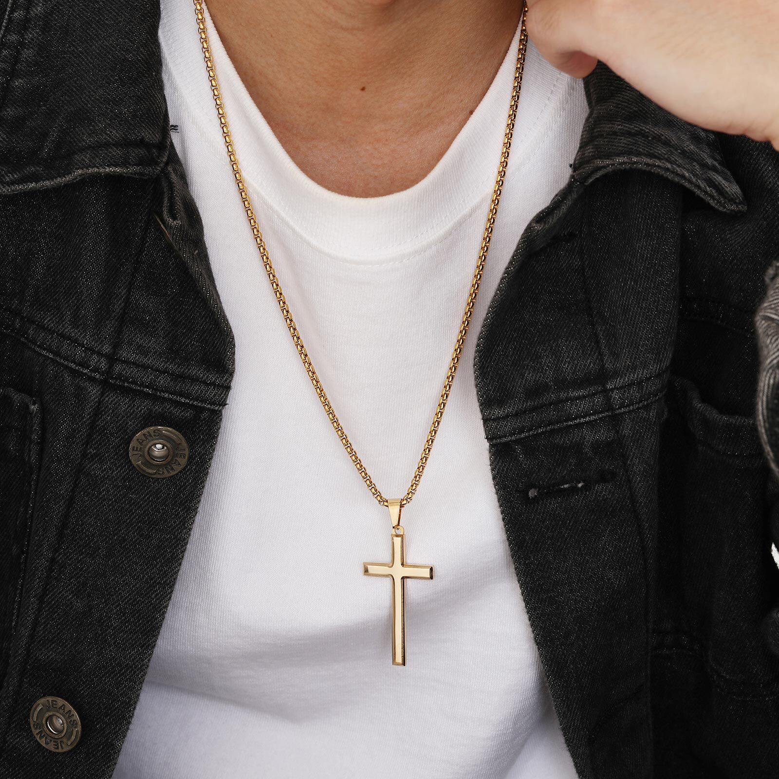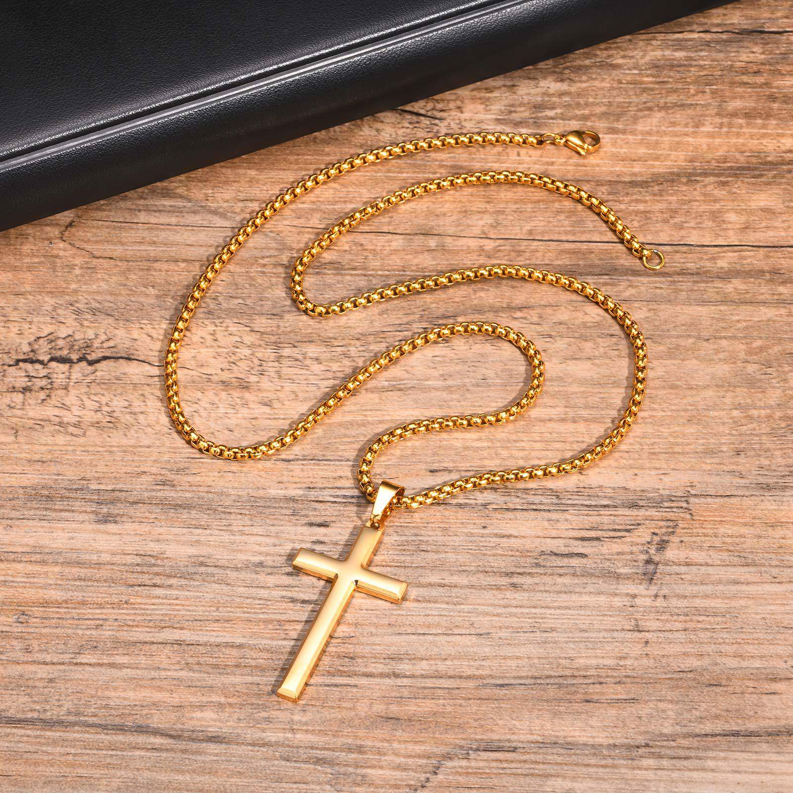 全饰爱 时尚简约十字架项链男女个性necklaces钛钢吊坠光面饰品