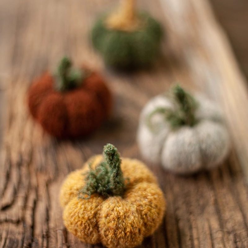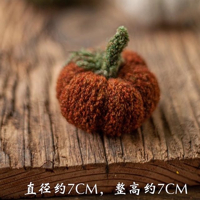 毛线棒针手作复古黄色灰白咖色小南瓜摆件儿童摄影拍照装饰小道具
