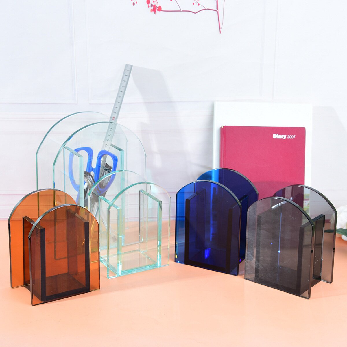 北欧简约风格水晶客厅摆件家居软装花瓶绿蓝茶色灰色双拱门花插