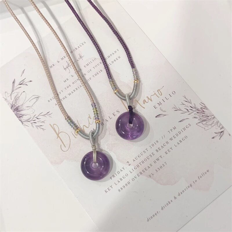 天然紫水晶平安扣项链女学生简约新颈链简约气质紫色吊坠锁骨链