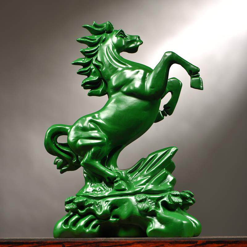 绿色木雕十二生肖马饰品实木马成功家居客厅办公室装饰开幕礼品工