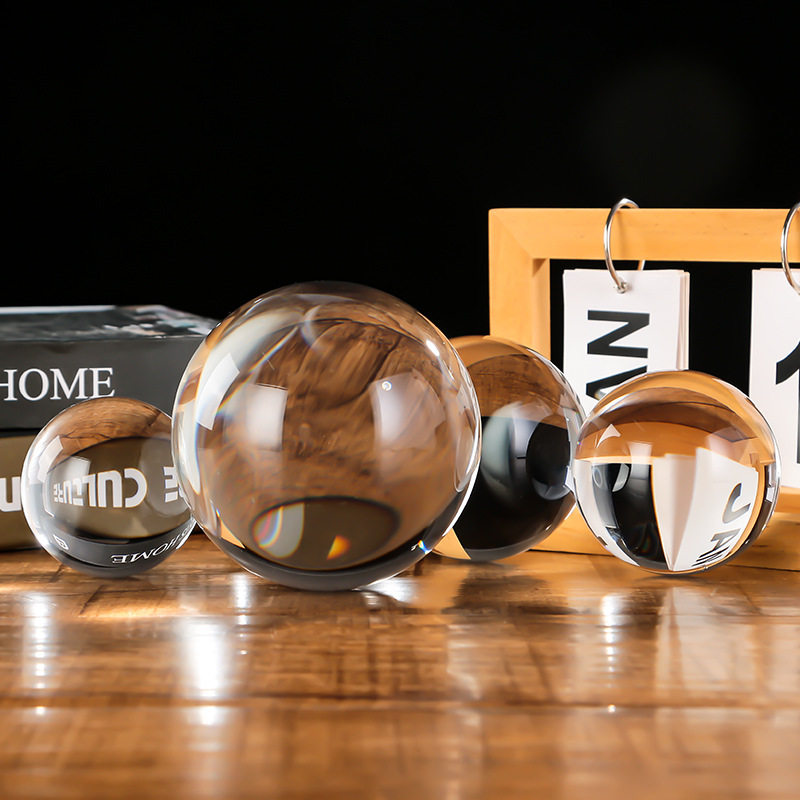 新款白色水晶玻璃球摆件透明玻璃球大小号生日礼物家居办公桌摆件