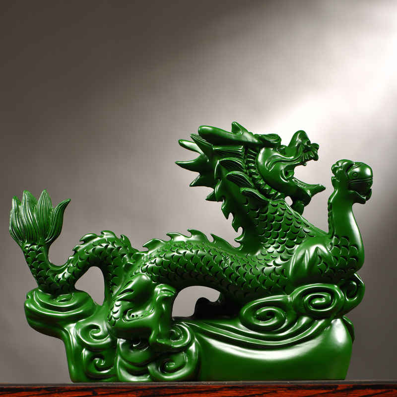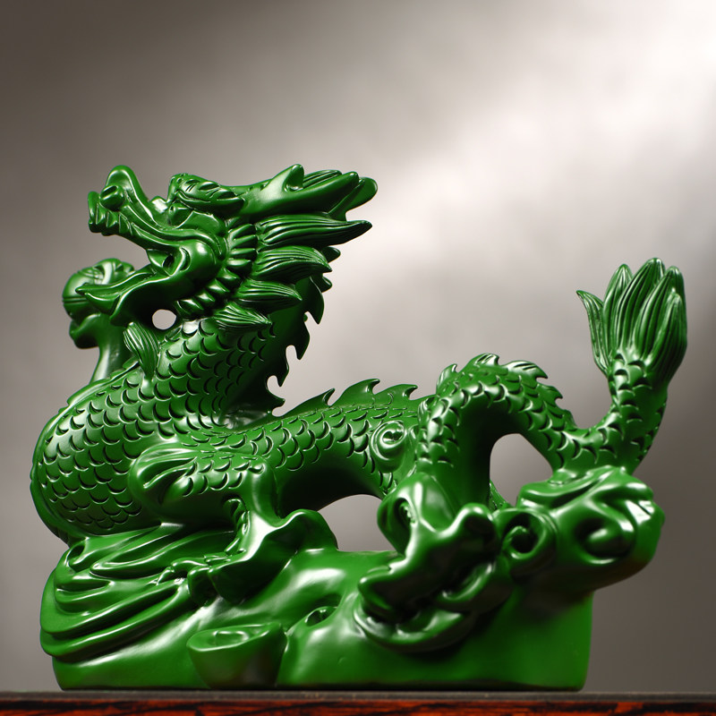 绿色实木雕刻龙摆件新中式十二生肖龙客厅电视柜桌面装饰工艺礼品