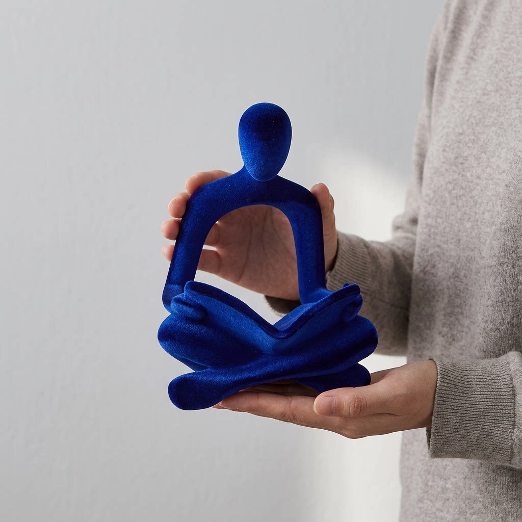 休闲简约风蓝色毛绒人物雕塑摆件家居装饰品创意工艺品