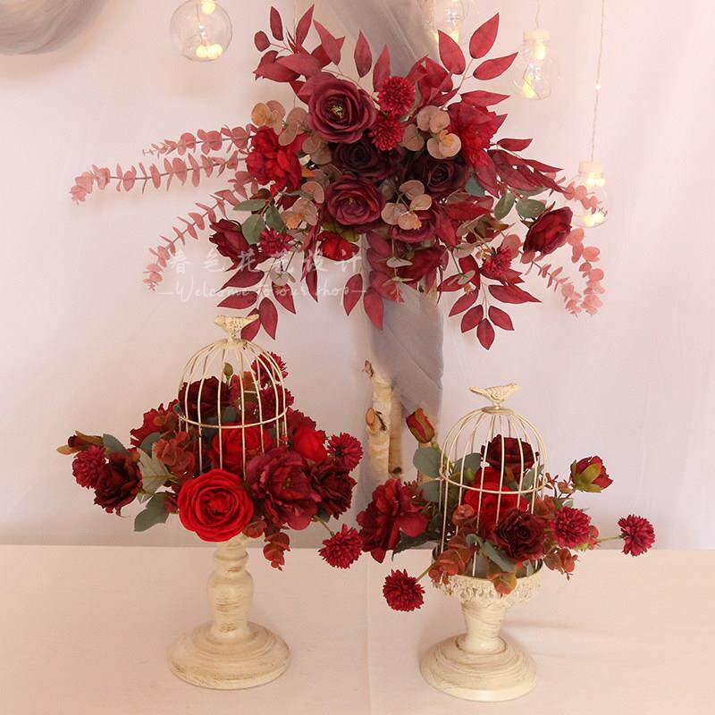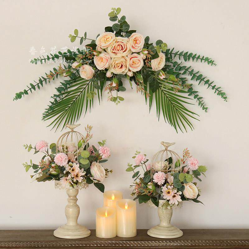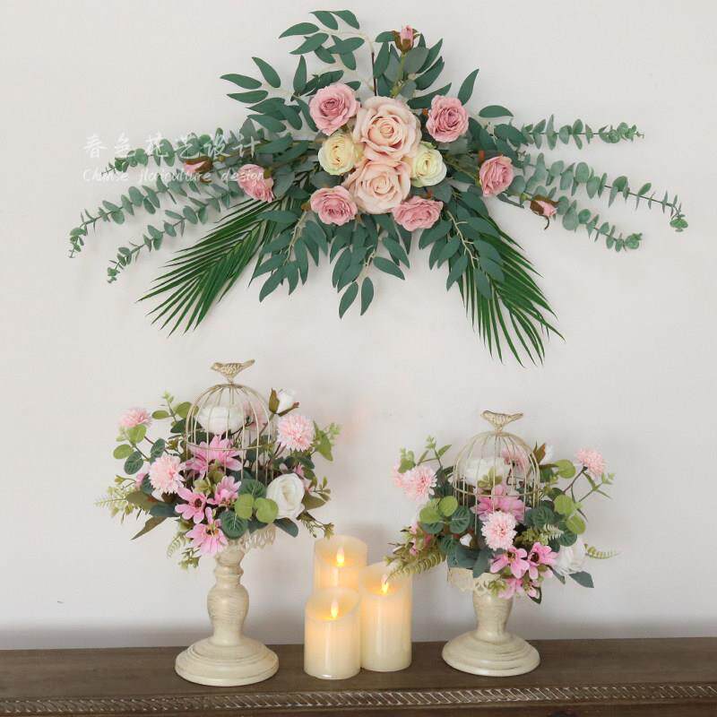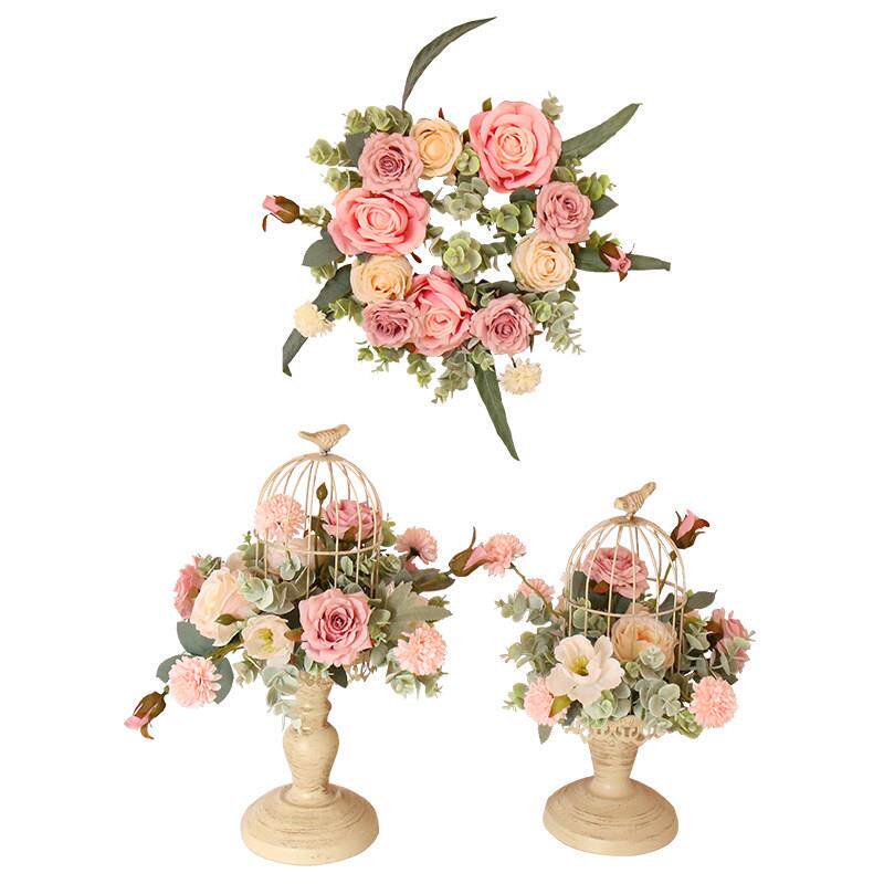 小清新彷真花花艺鸟笼盆栽摆件婚礼签到台桌花套装家居桌面装饰