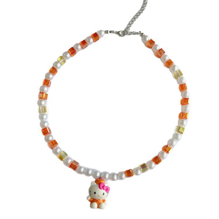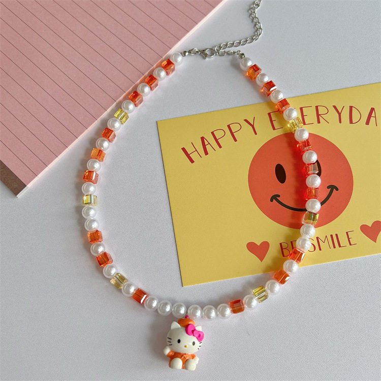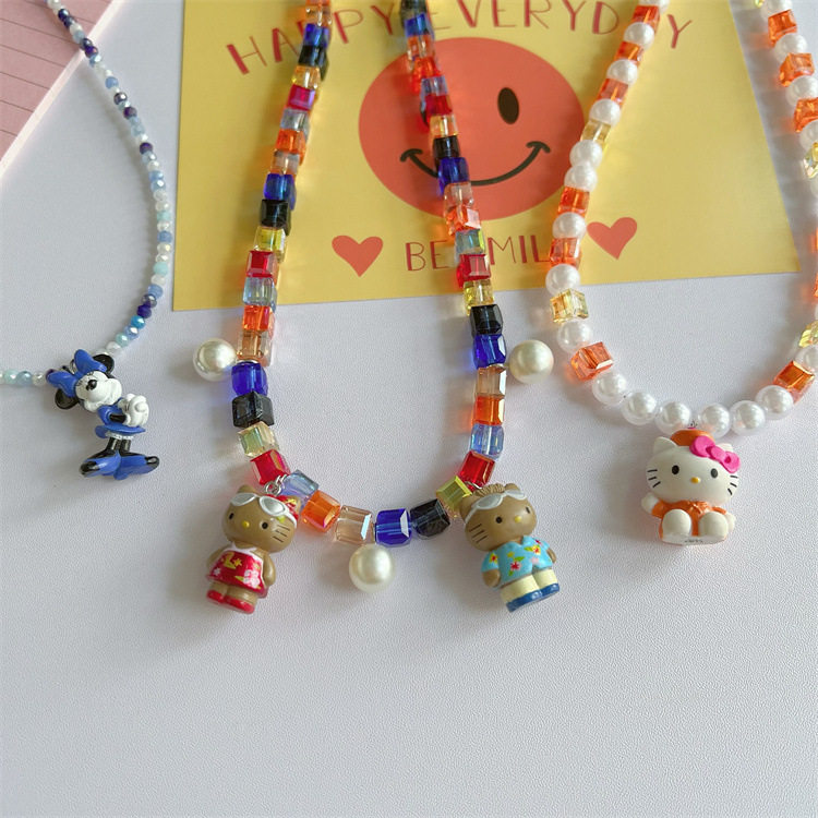 手作水晶串珠时尚卡通泳装黑皮男孩南瓜Kitty颈链锁骨链短款项链