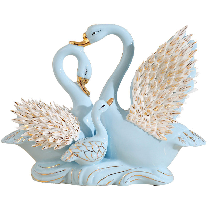 欧式陶瓷小天鹅情侣新婚结婚礼品家居婚房客厅电视柜创意装饰摆件