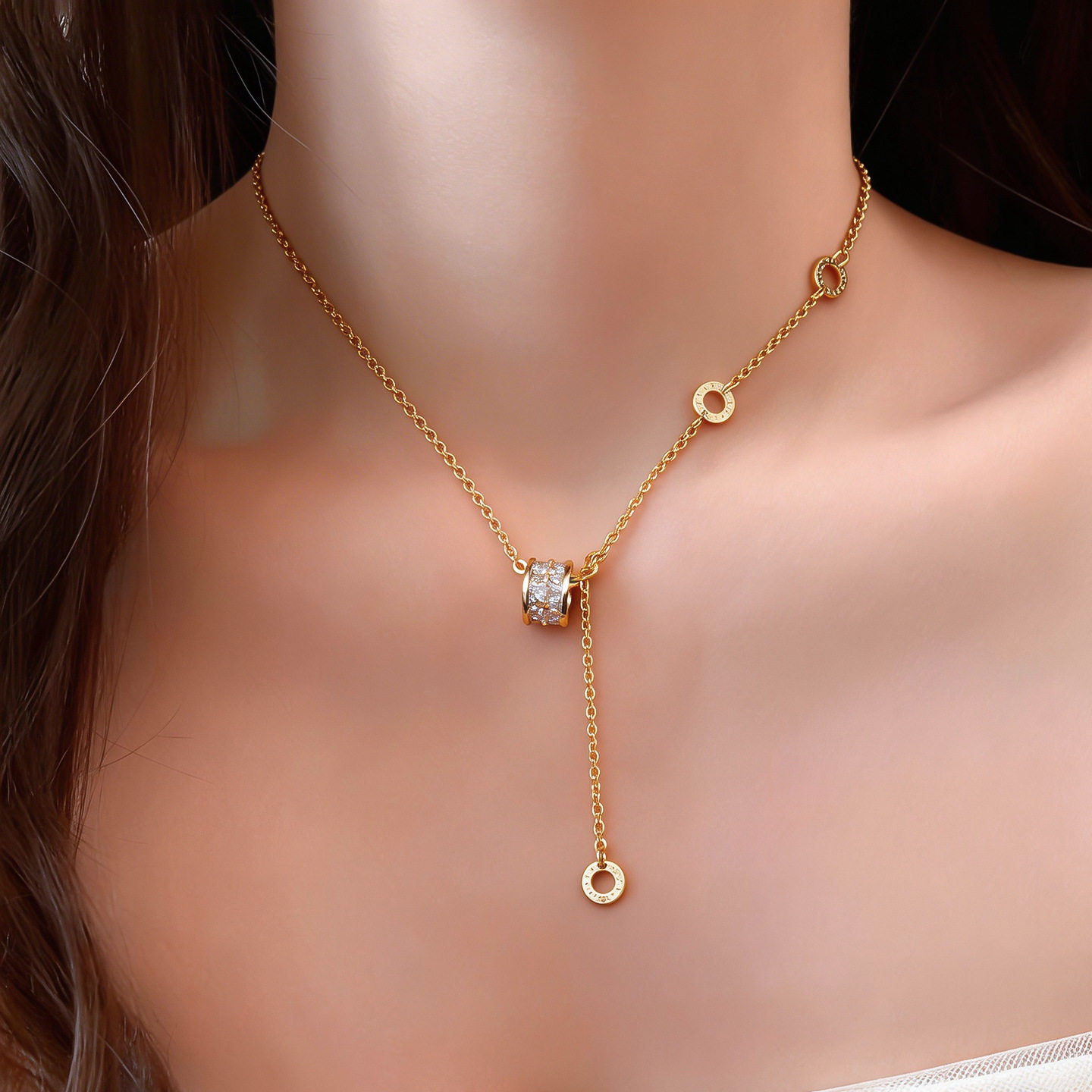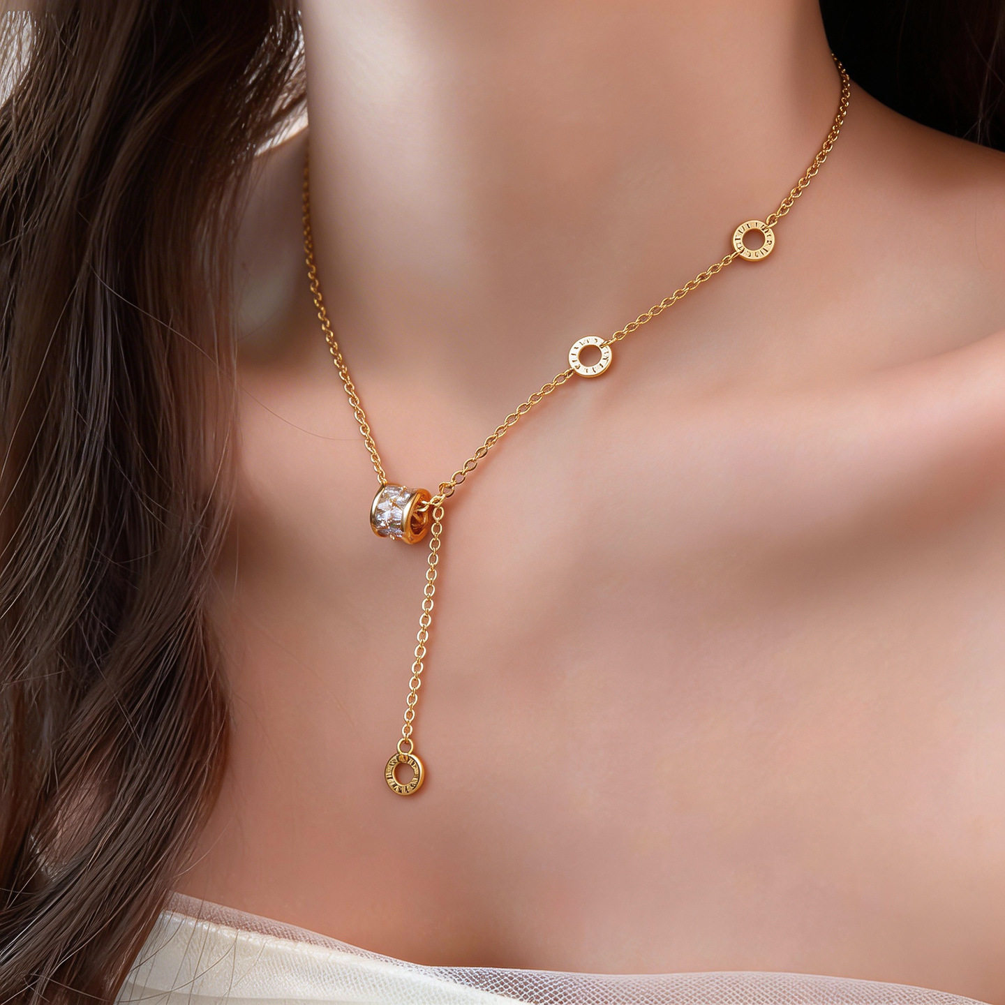 French Zircon Necklace, Circle Minimalist Luxury Chain