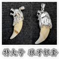 盈月复古狼牙吊坠男女士925纯银套项链真品包黑狗牙牙套防裂