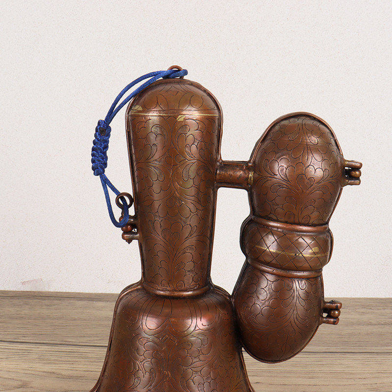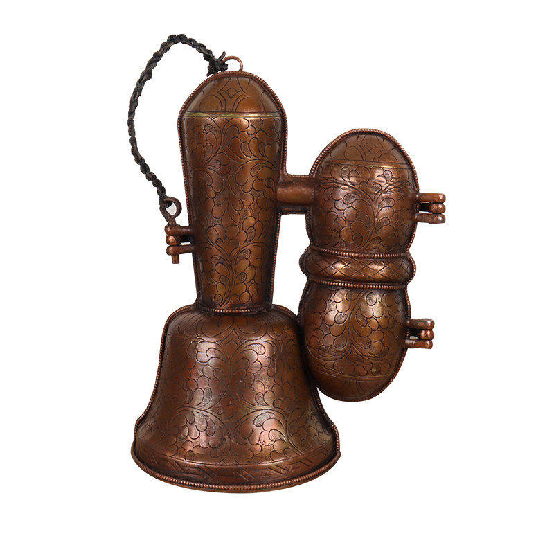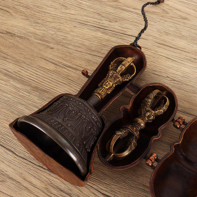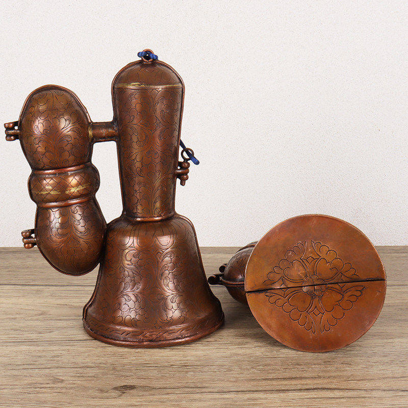 尼泊尔纯手工金刚铃杵套铜盒收纳盒紫铜雕花铃铛包装外盒保护套